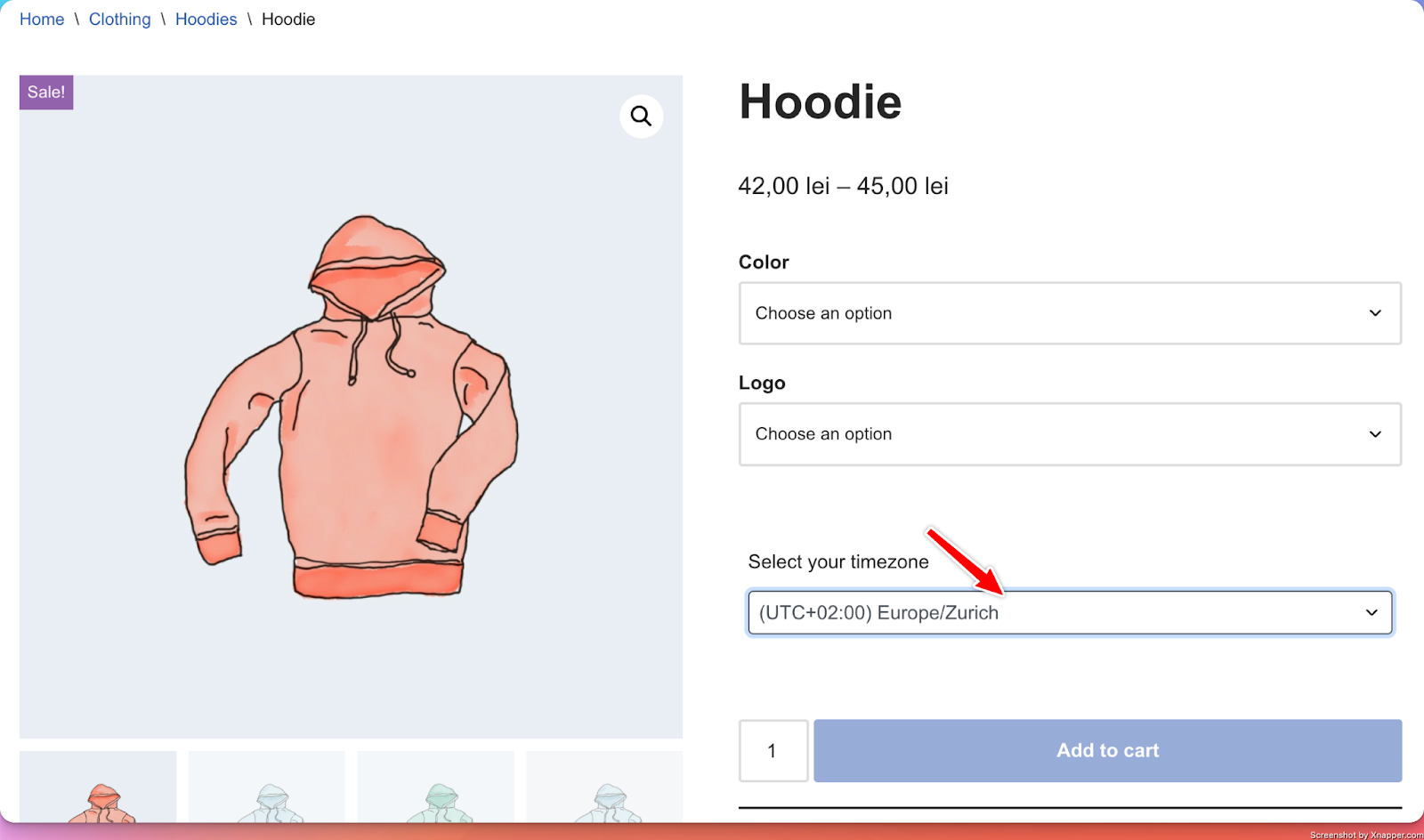 - Adds a select field with a list of predefined time zones from which customers can select their time zones that get added to their order.