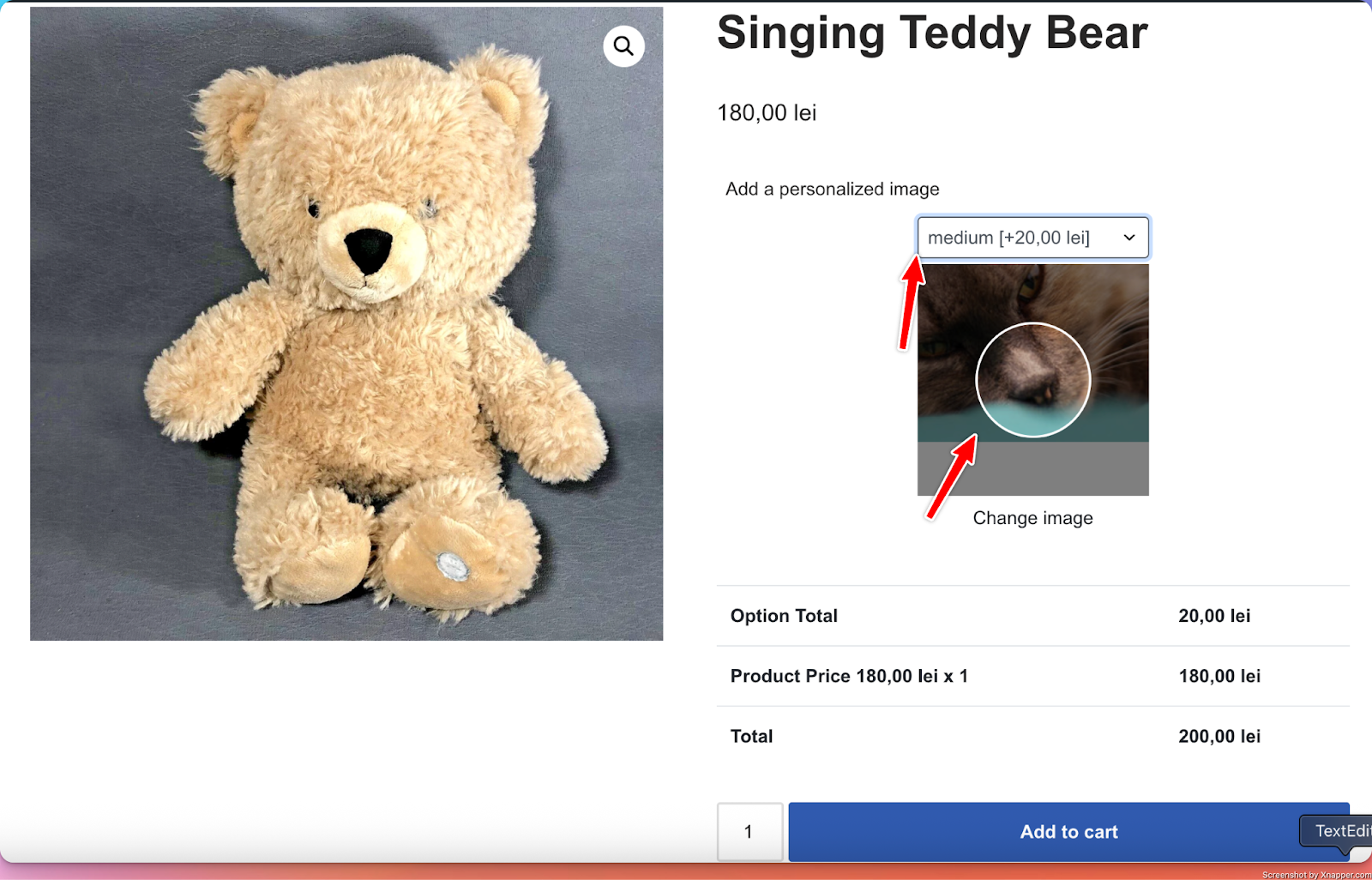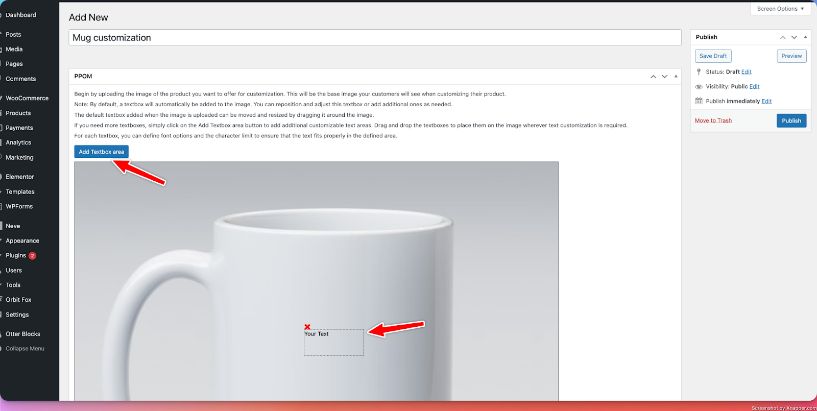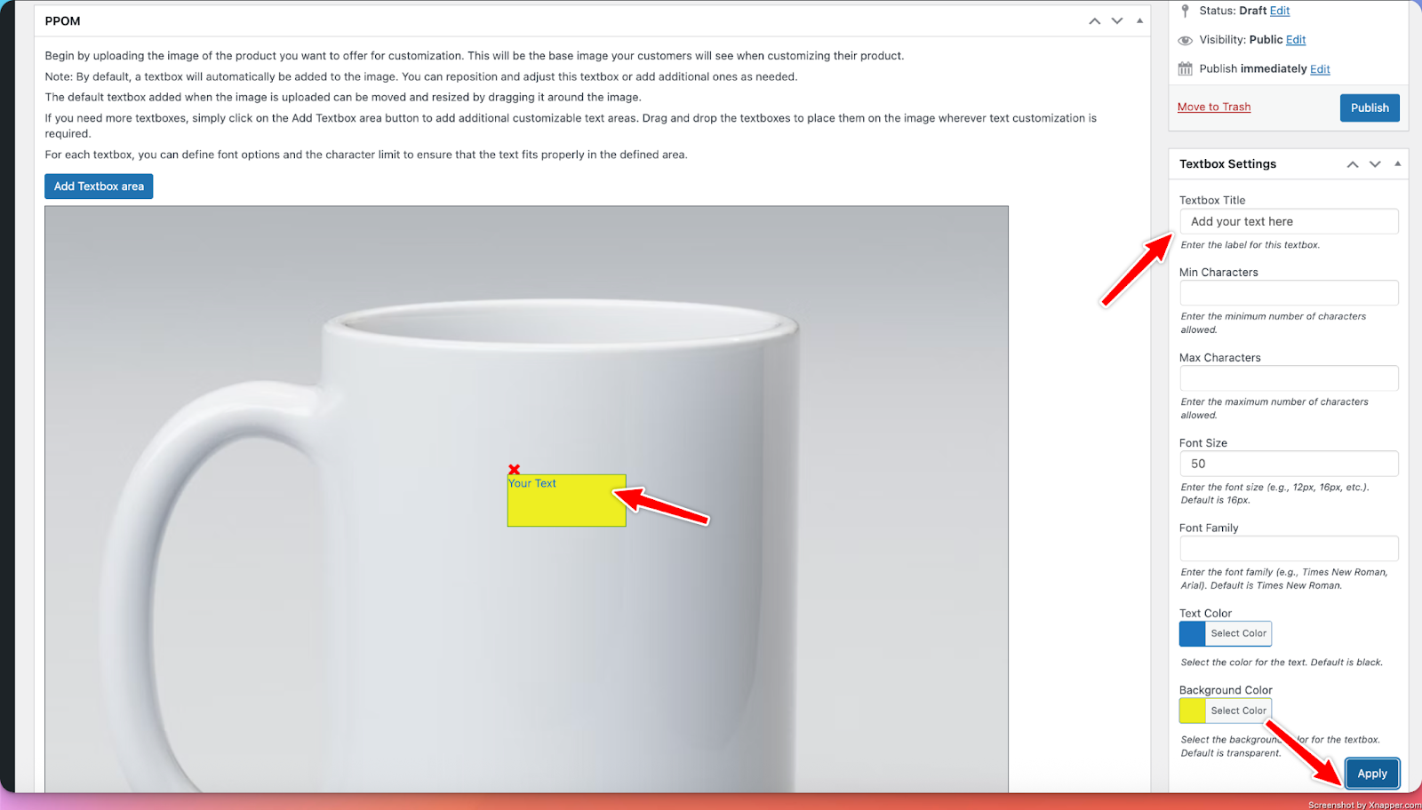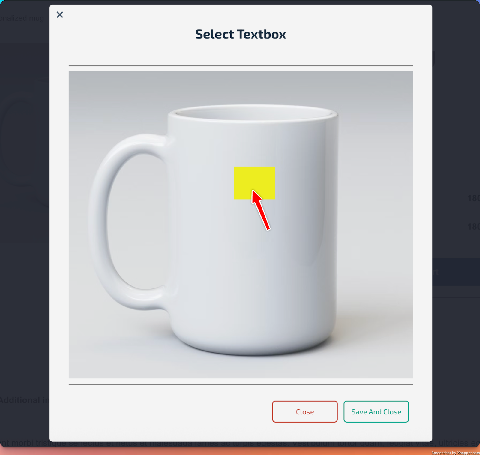 At first, it displays a textbox that you can place anywhere on the product image. Then, you can use the Add Textbox button to add more of them.