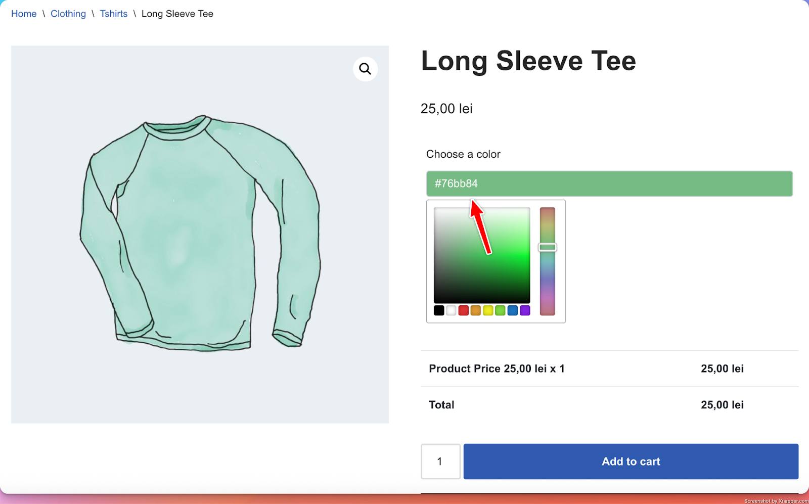 - Adds a list of colors from which customers can select their desired color that gets added to their order.