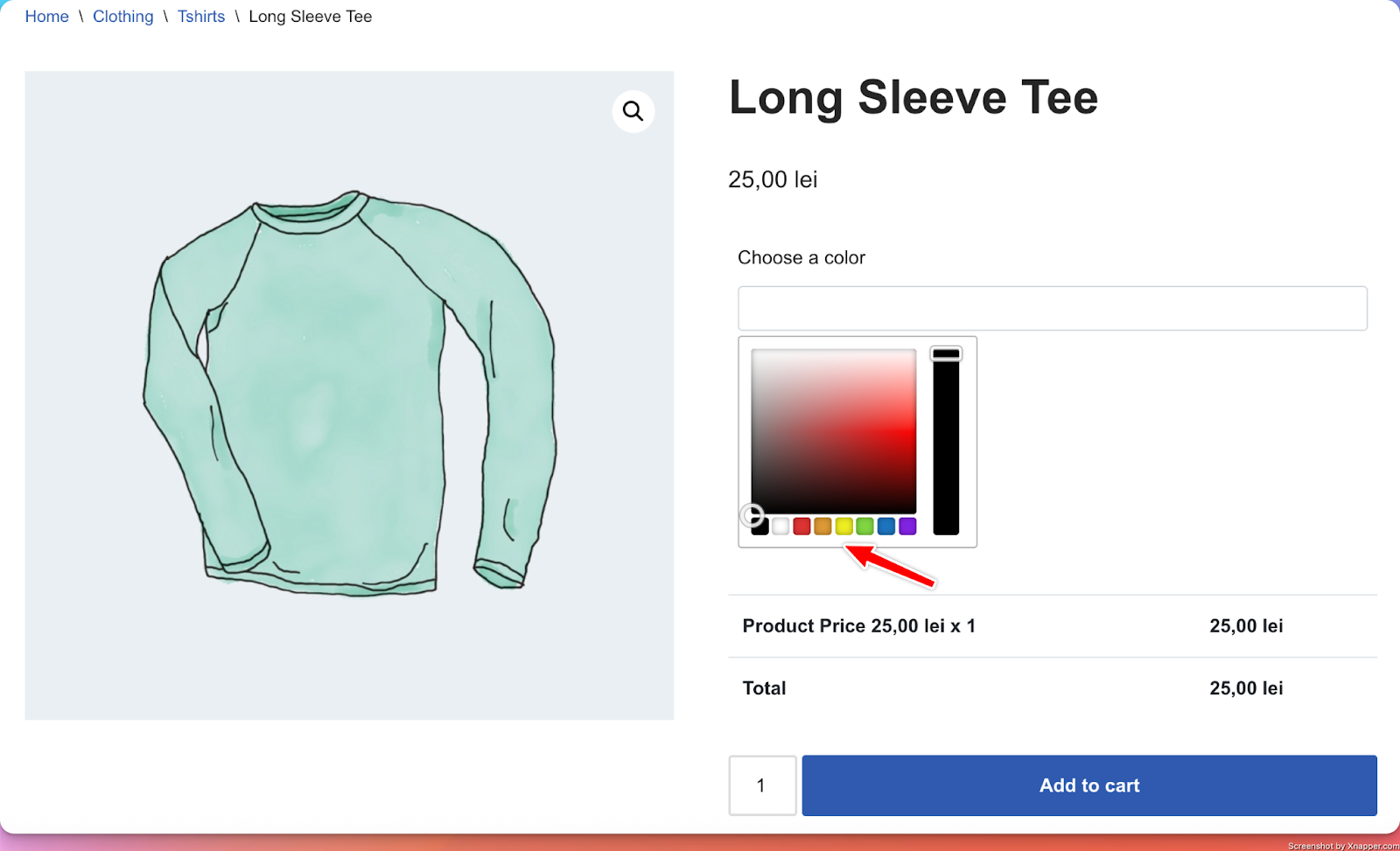 - Adds a customizable color field where customers can select a custom color that gets added to their order.