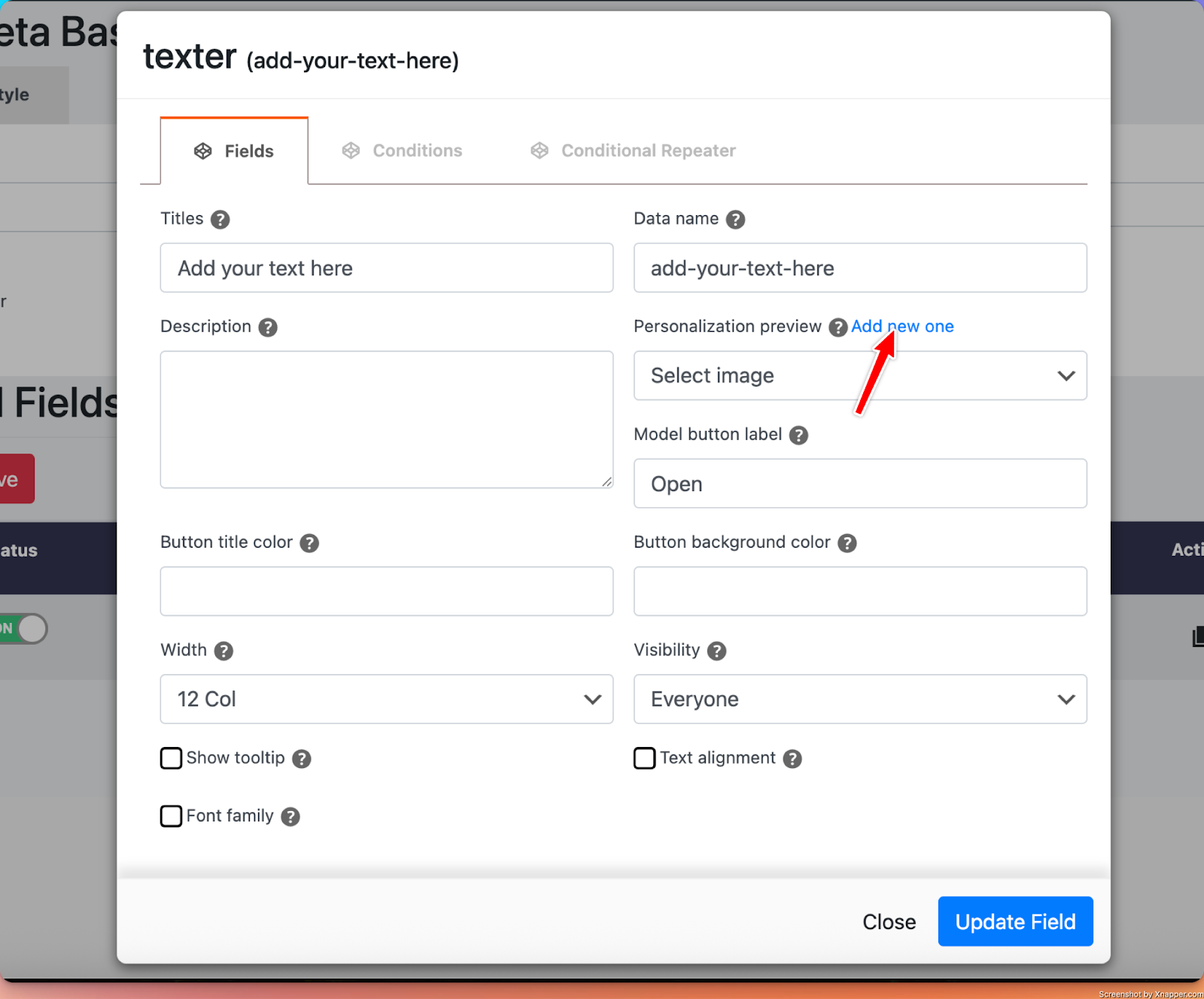 - Create a new personalization preview. Make sure you insert a title and upload an image to start customizing it.