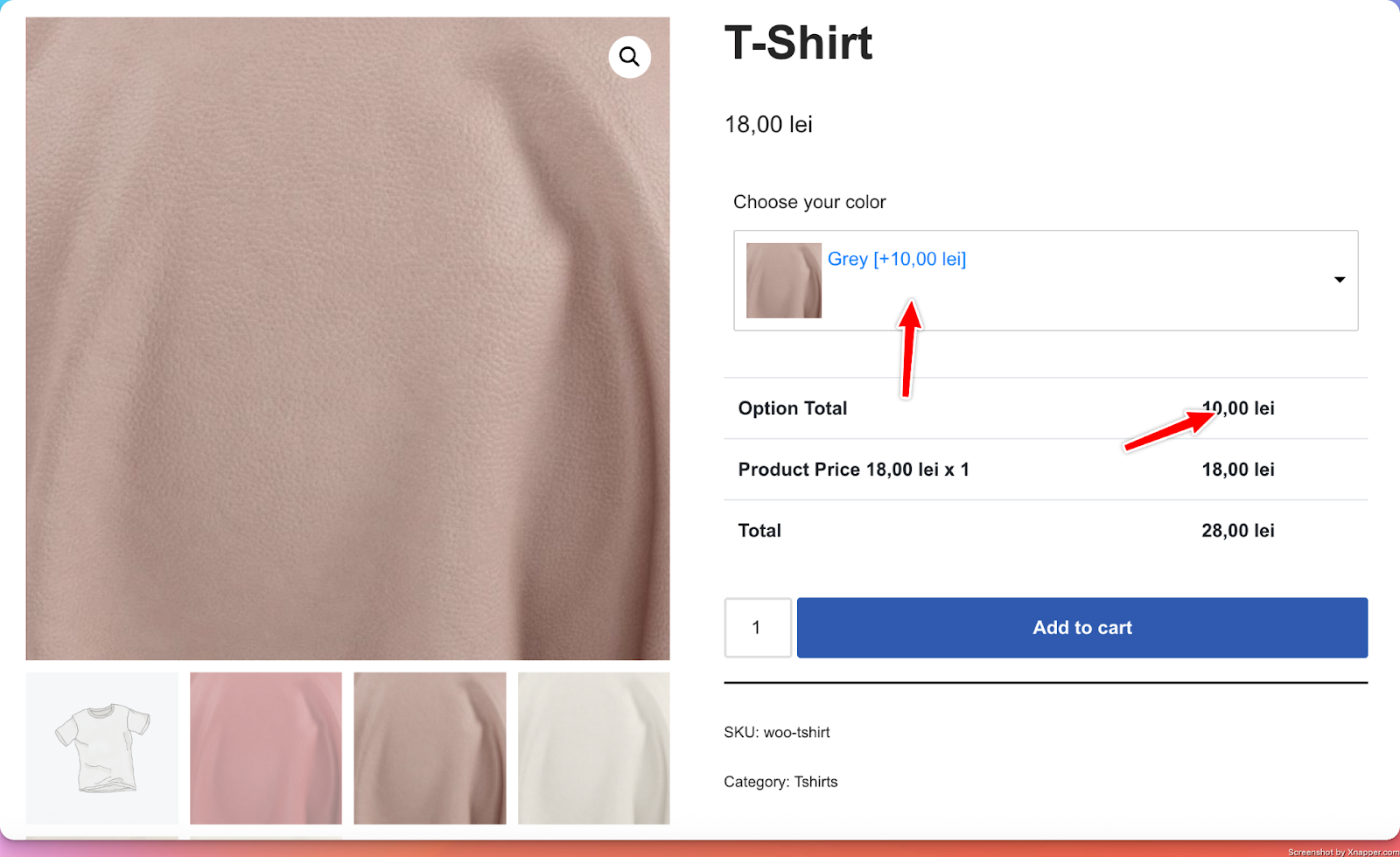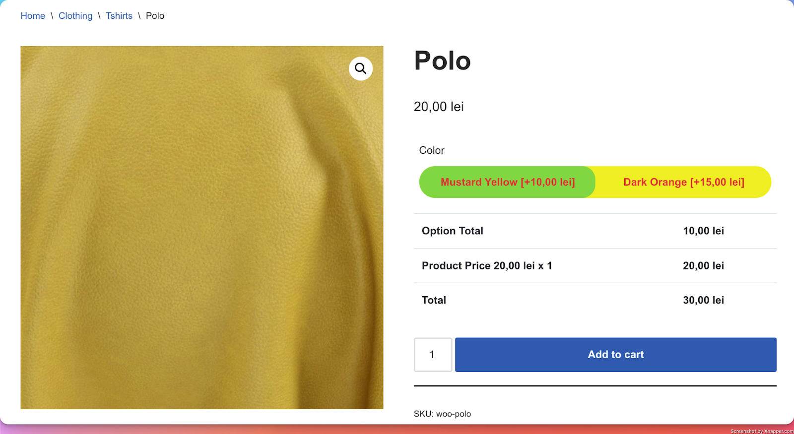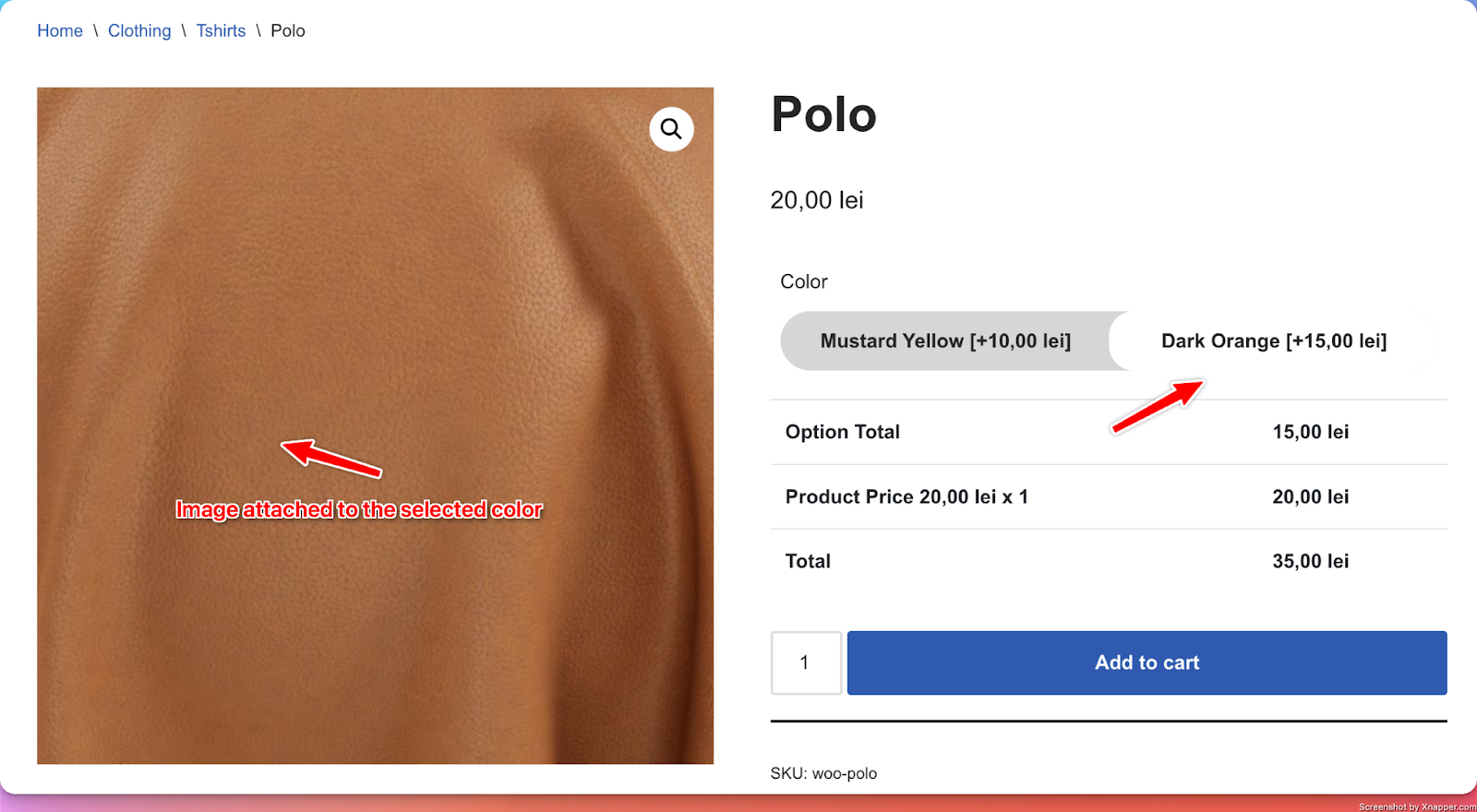 - Adds a customizable radio field where customers can choose from multiple options. For each option, the image of the product changes.