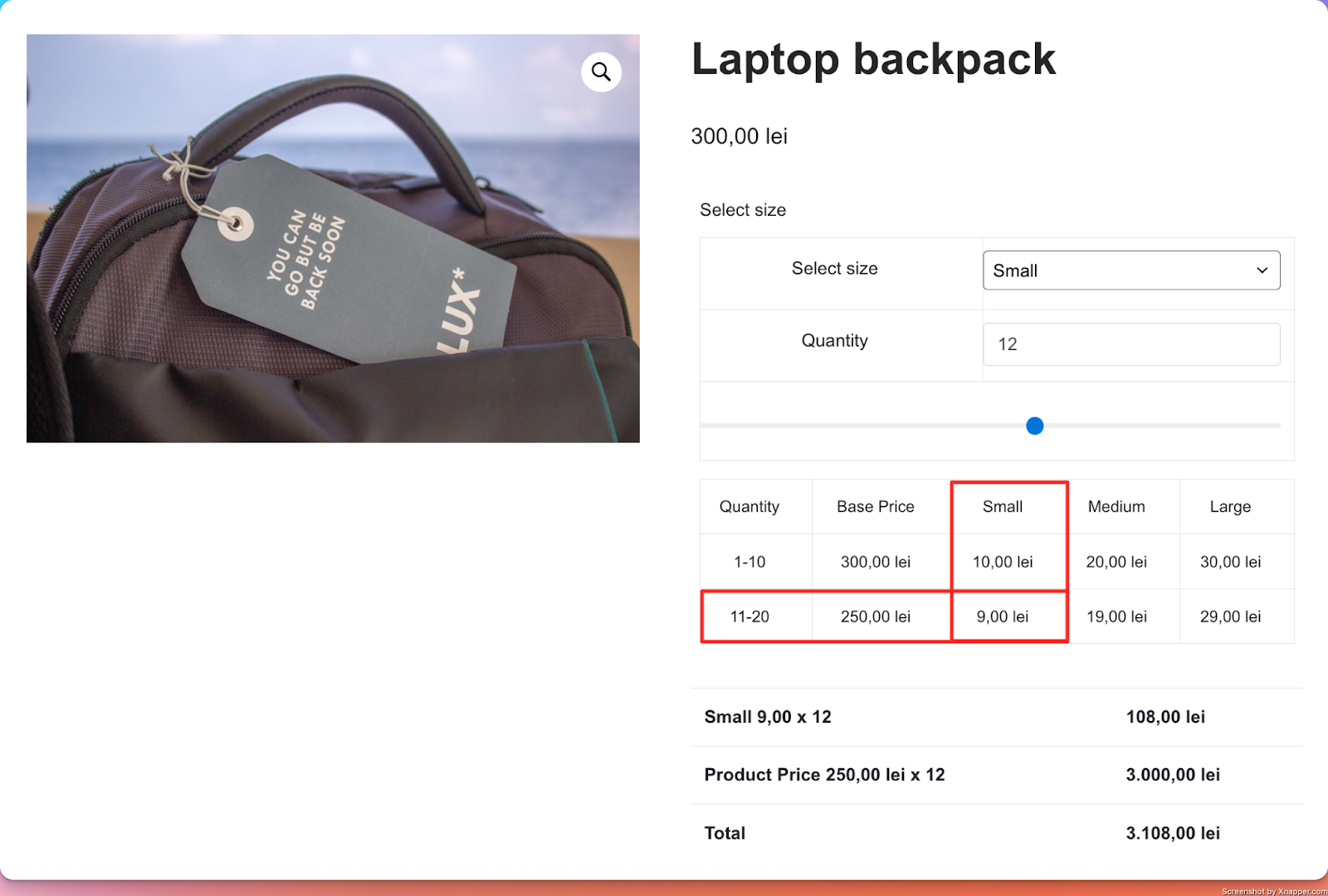 - Allow vendors to offer different prices per product, based on the quantity of products purchased and specific variation of the product ( like: small, medium, or large)