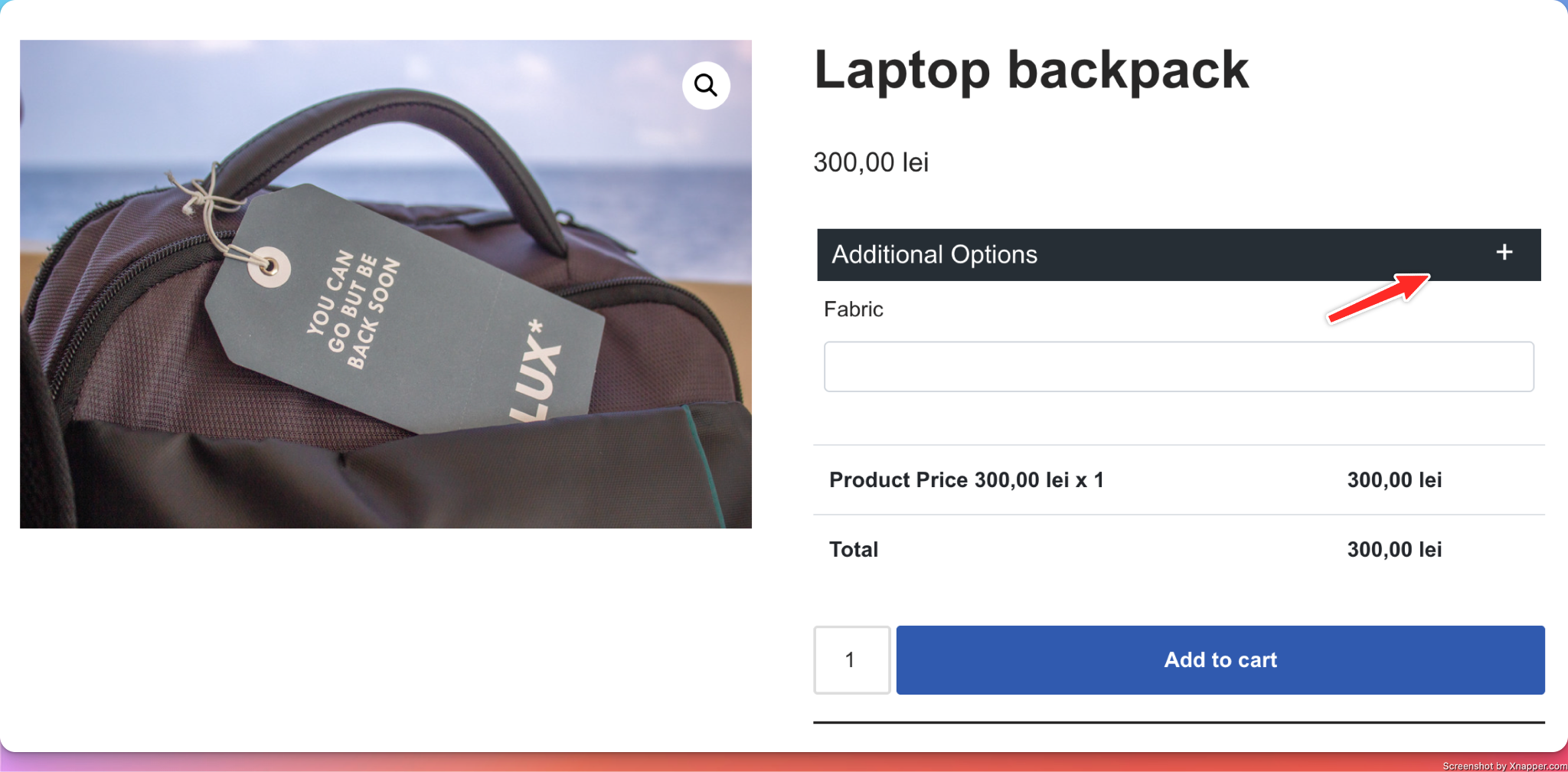 - Allow users to select from a dropdown list their desired additional option, and choose the quantity for that option.