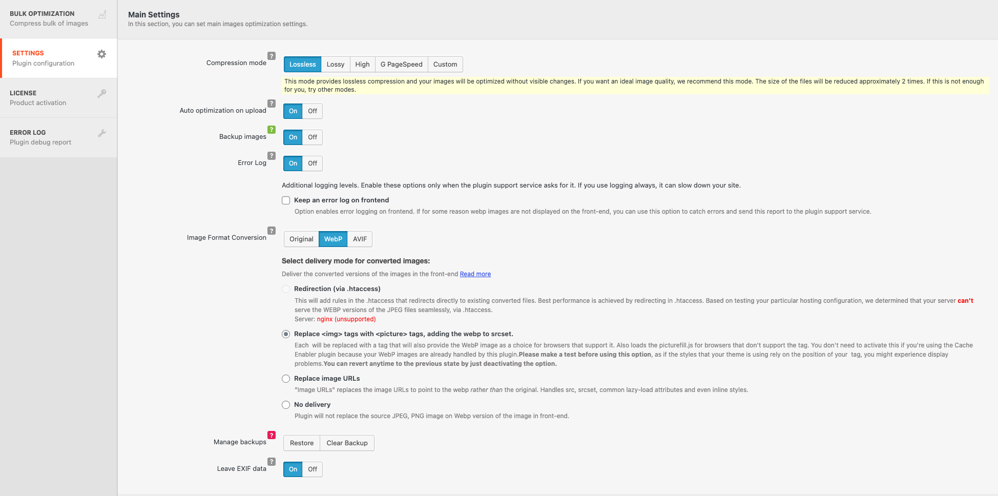 Step 1: Configure WebP settings