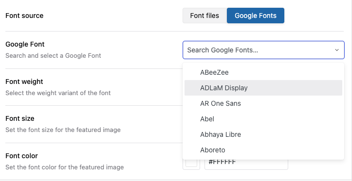 Configuration Location: Auto Featured Image > Settings > Image Generation > Typography