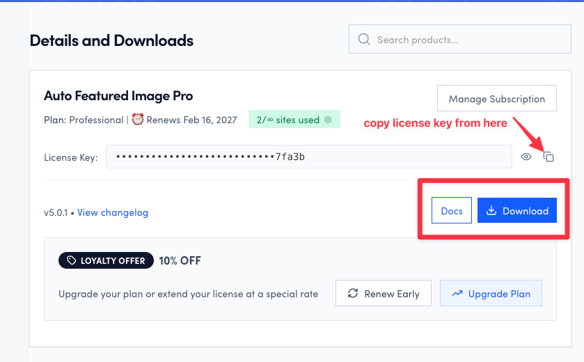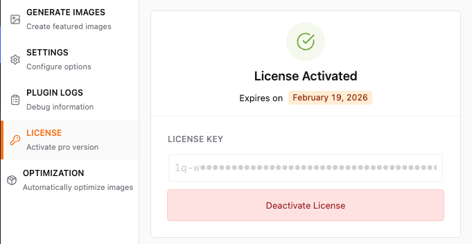 Copy your license key and add it here: Auto Featured Image > License. Then click Activate License.