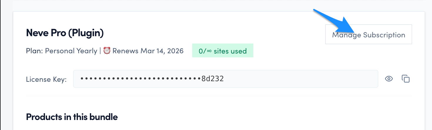 1 From your ThemeIsle account, in the main My products area click on the Manage Subscription button.