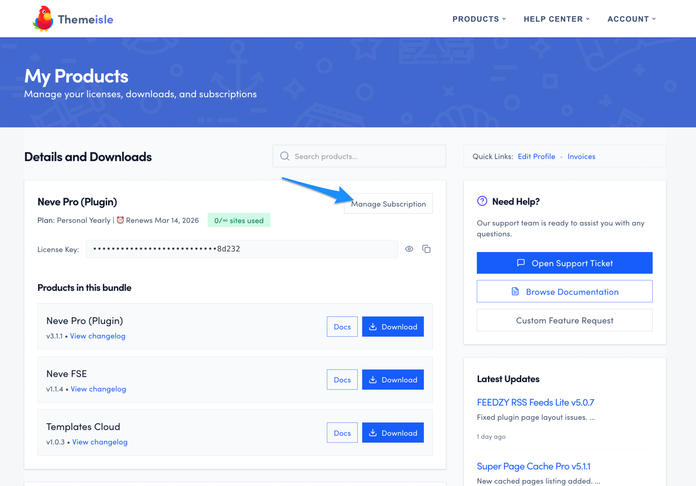 1 From your ThemeIsle account, go to the main My Products tab.