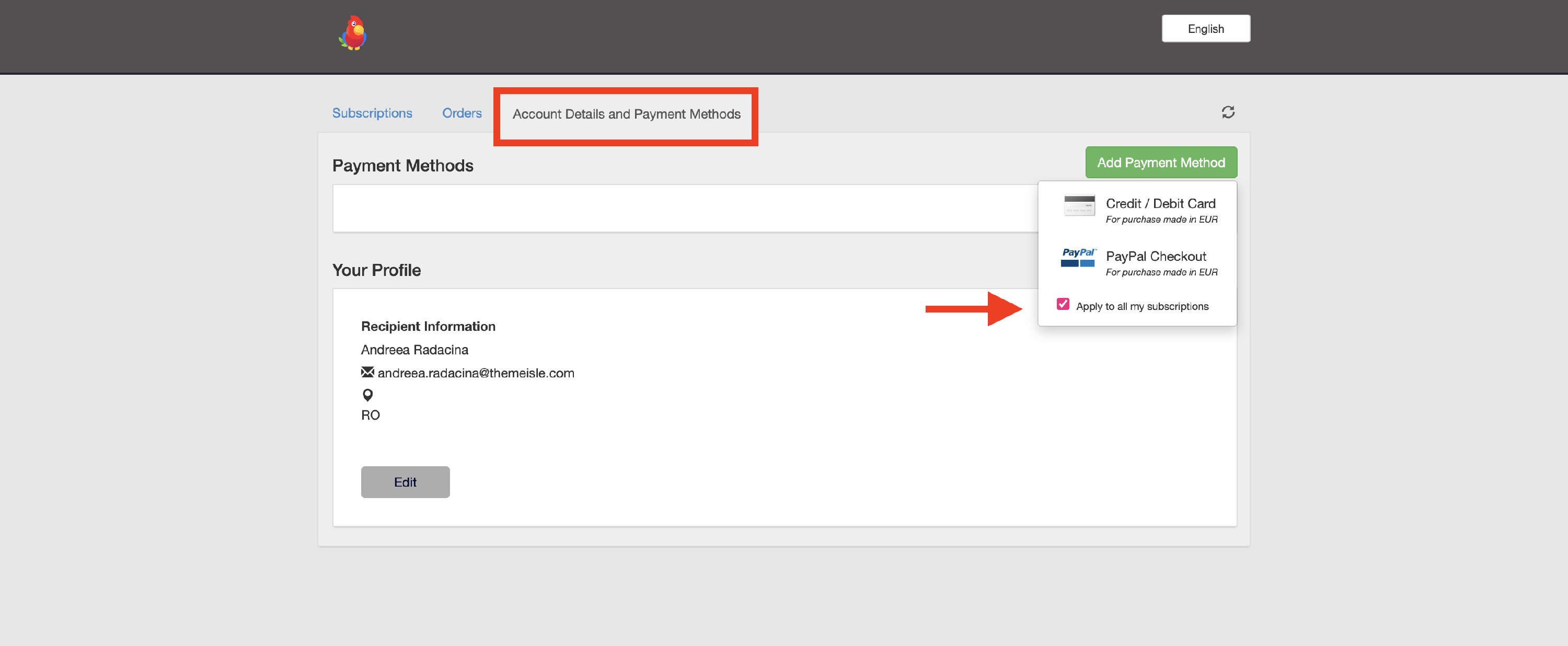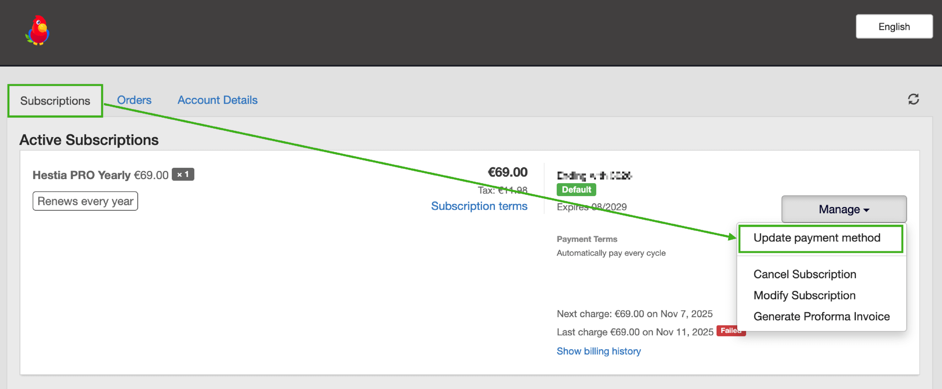 If you are interested in updating your payment details and managing your subscriptions, this can be done as follows: