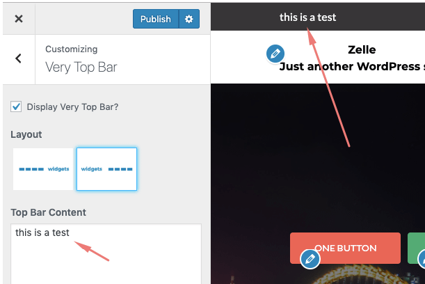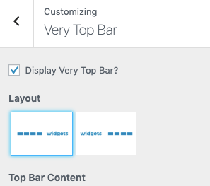 The first step is to activate the very top bar so please navigate to Appearance > Customizer > Very Top Bar and check the "Display very top bar " option. The option is unchecked by default.