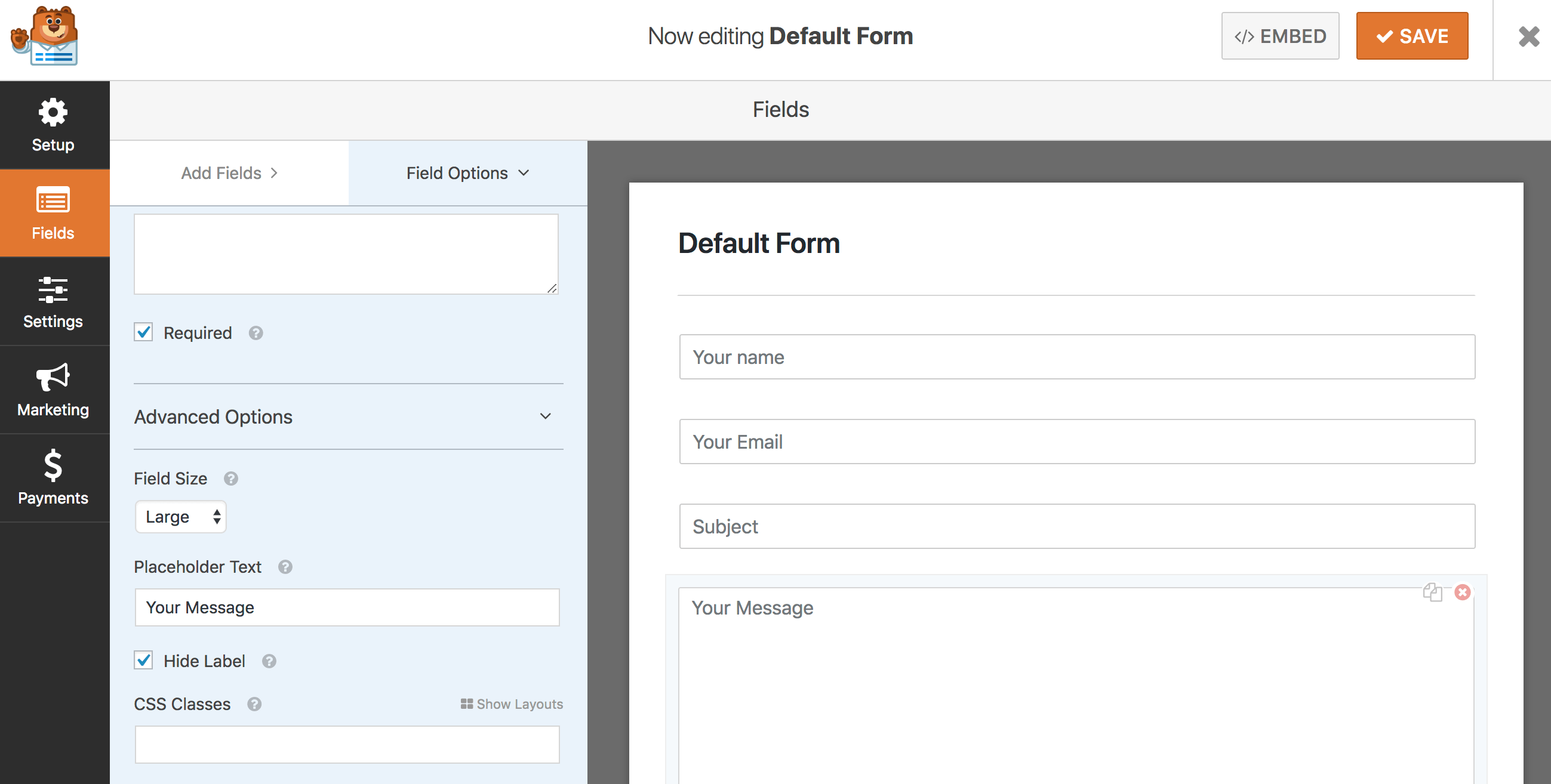 - Placeholder Text: Your Message ( or the text you want as a placeholder )
