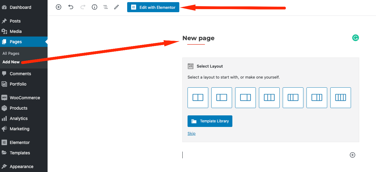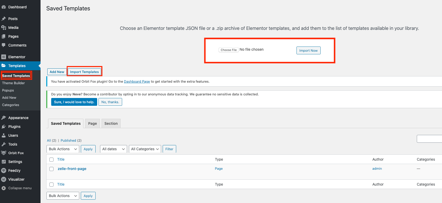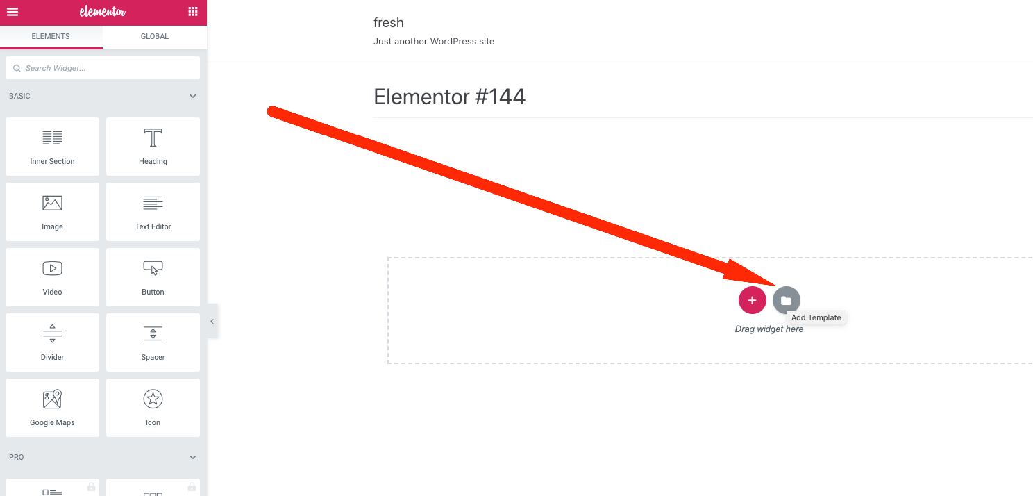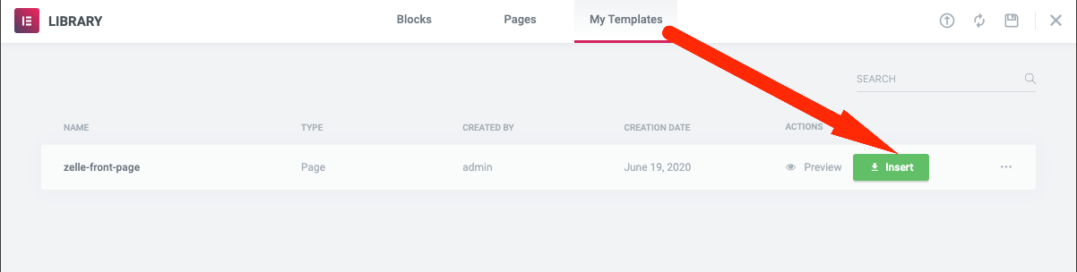 2. Now you can insert it on the page, by creating a new page and editing it with Elementor, click on the folder icon in the page content, and choose the imported template.