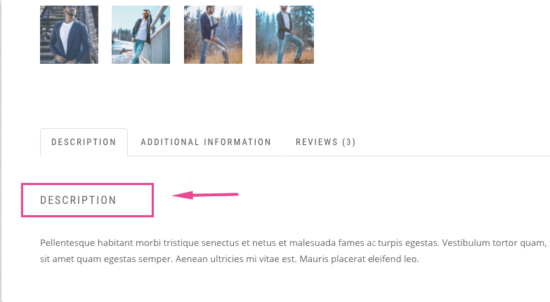 If you want to remove the description heading from Woocommerce single product tabs, add the following code at the bottom of the functions.php file of your child theme.