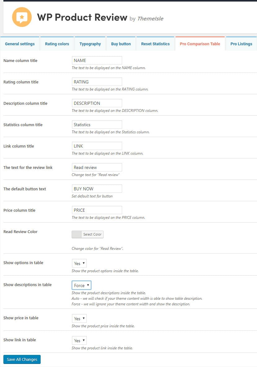 That's it! Apart from shortcode settings, you can find additional settings in the PRO Comparison Table tab under the Product Review's settings.