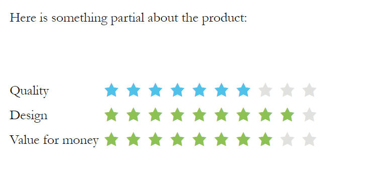 The review's rating options second, rendered through the first template