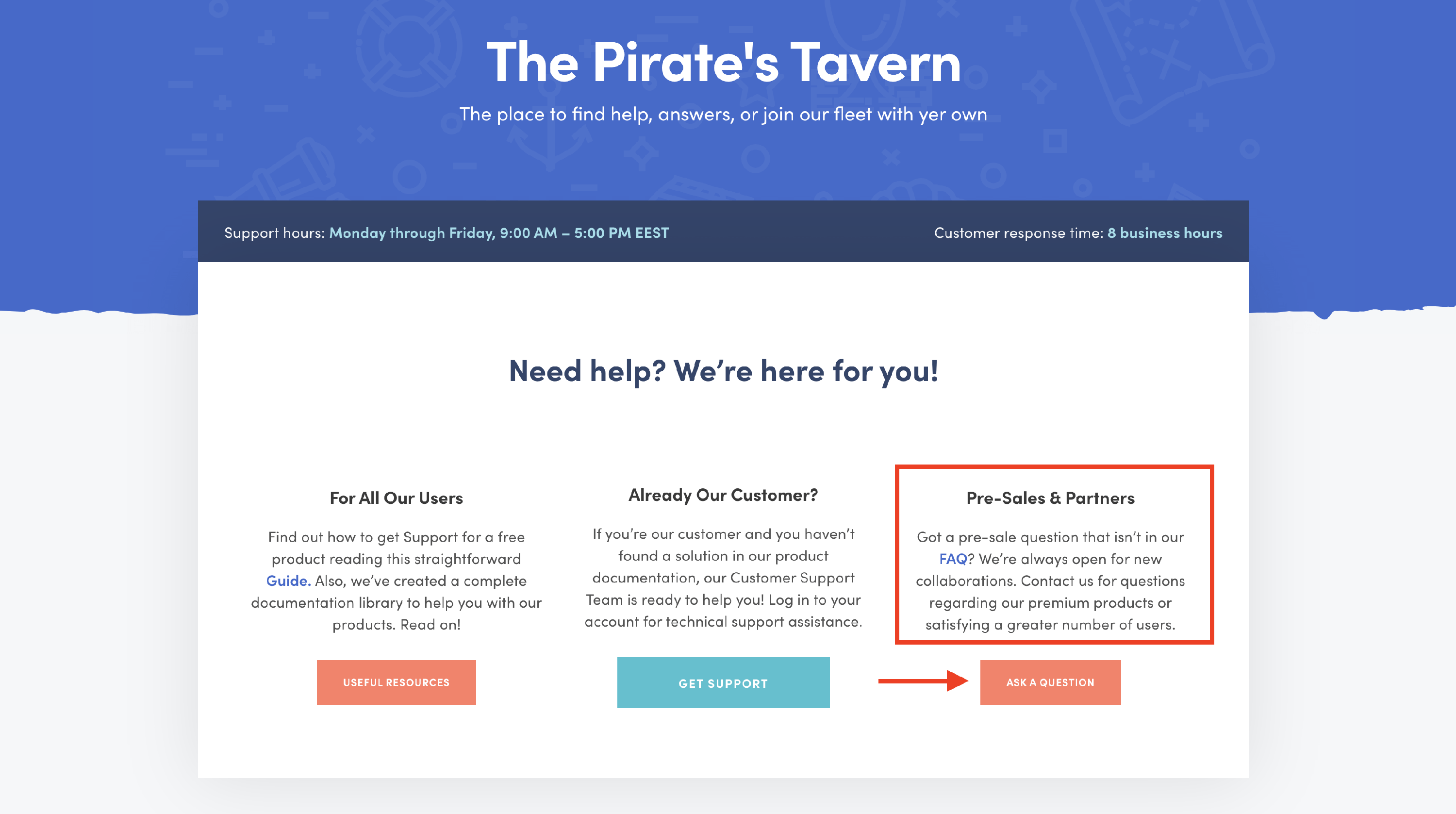 3 Go to the Pre-Sales & Partners section and use the Ask a Question button.