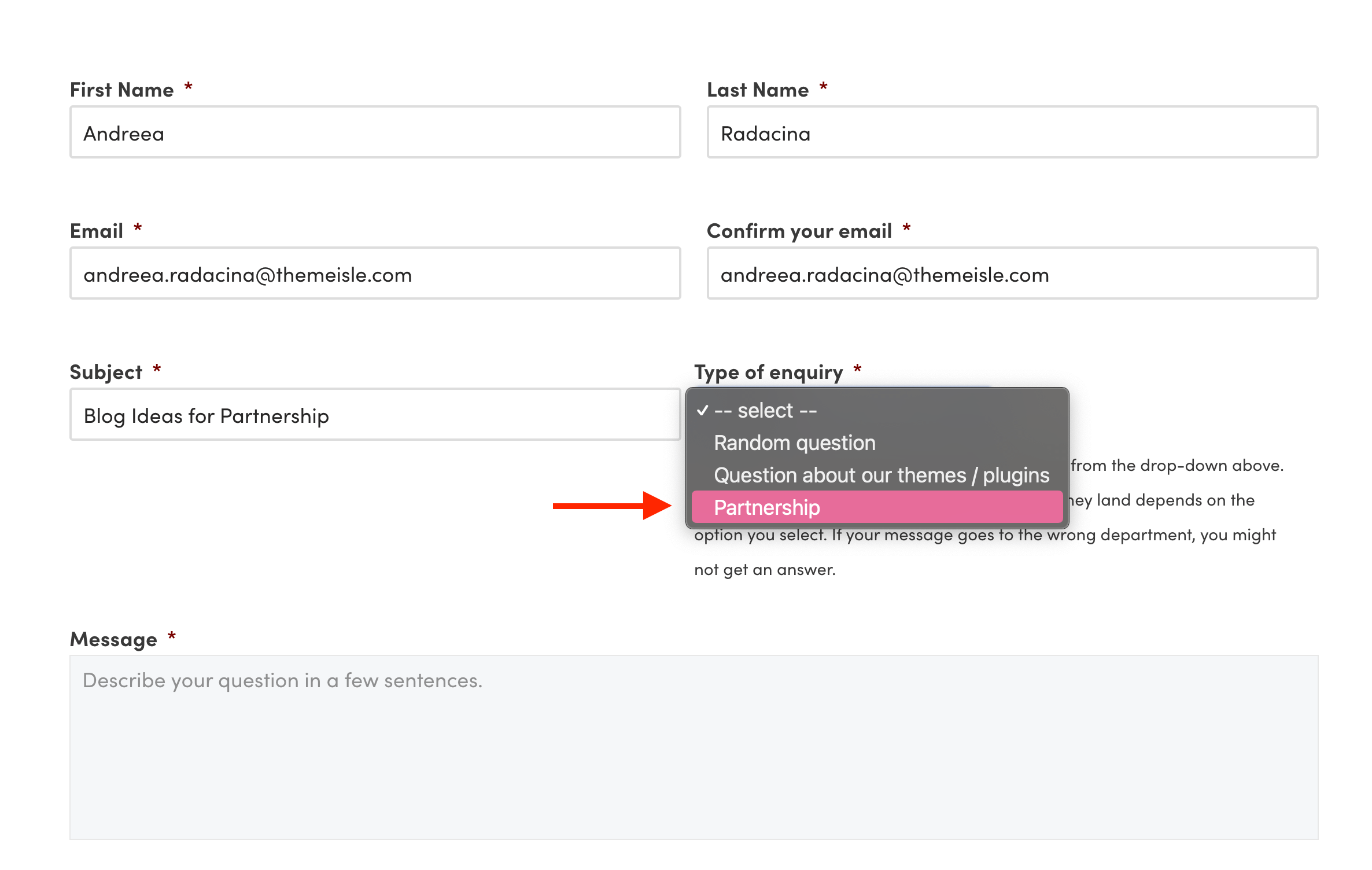 4 Fill in your details and message, and don't forget to select Partnership as the Type of Enquiry.