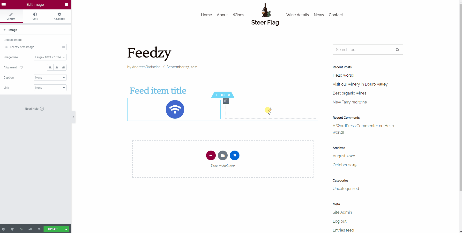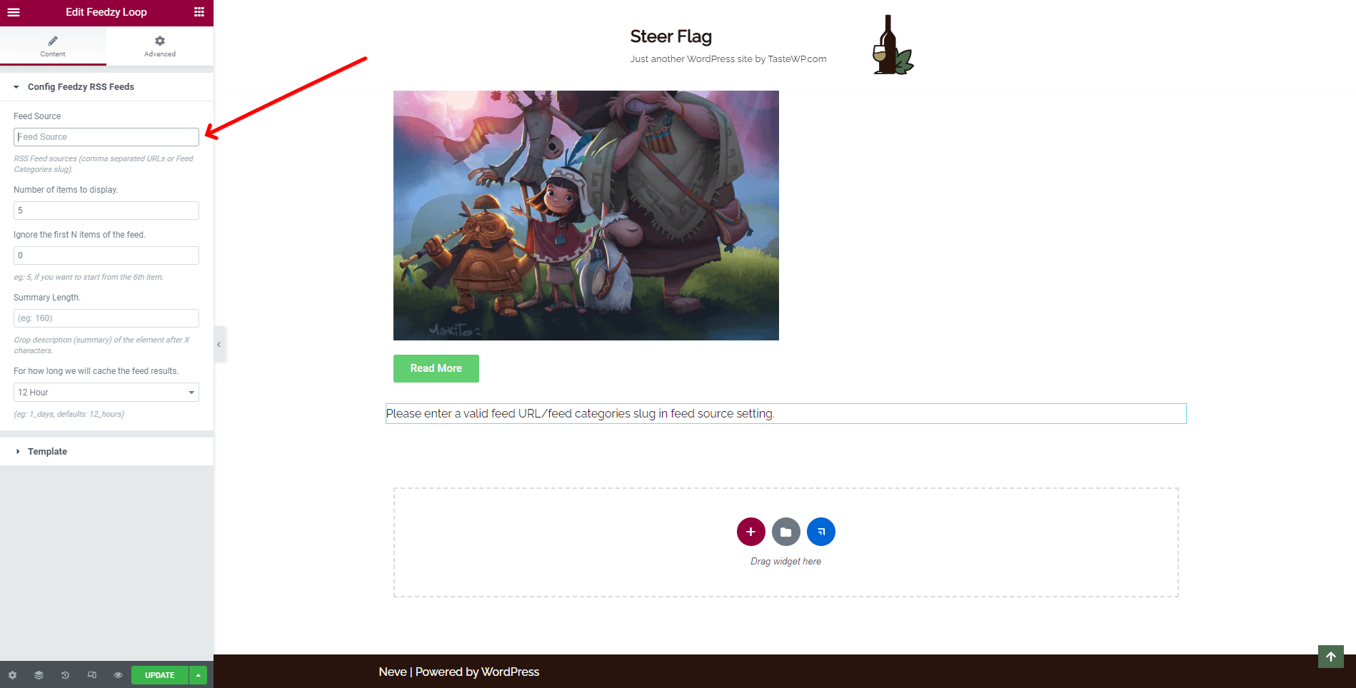 Configure the Feedzy RSS Feed - by adding the feed source URL.