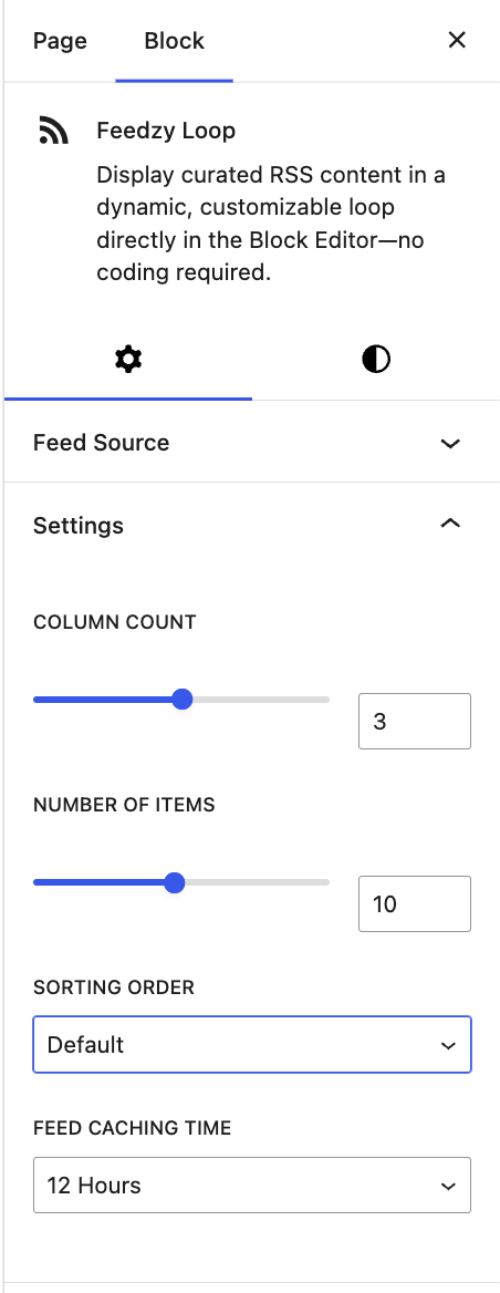 π Note: The Feedzy Loop feature allows you to display curated RSS content in a dynamic, customizable loop directly in the Block Editor.