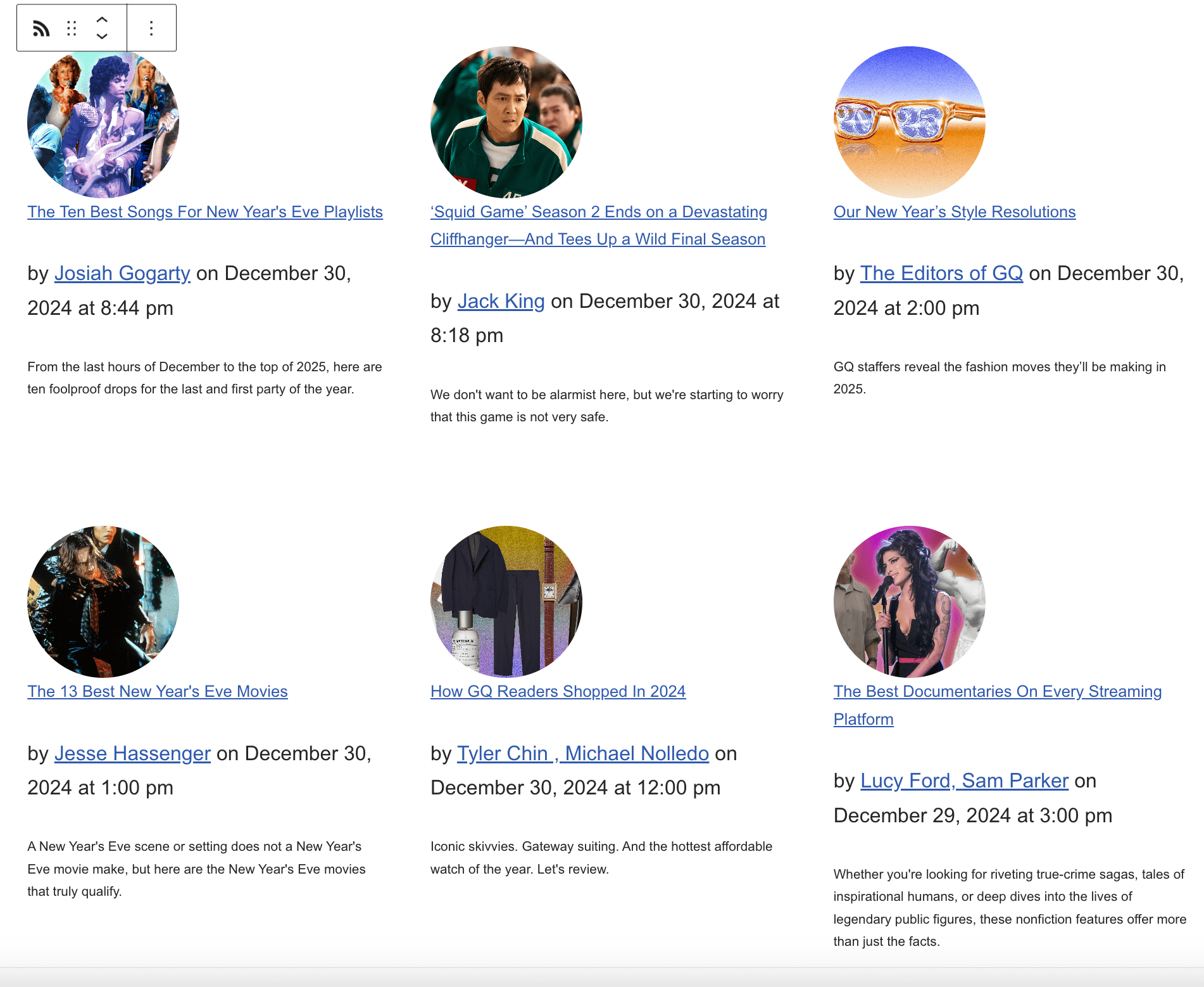 Example of magic tags used in the Feedzy Loop block.