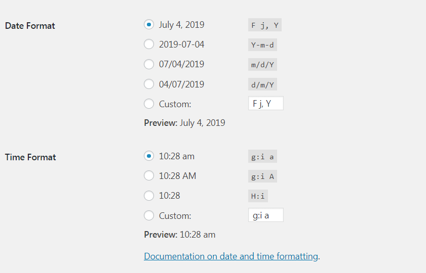 Similarly, you can provide date or time to show only the date or the time. The date and time formats will be the ones you have specified under General Settings