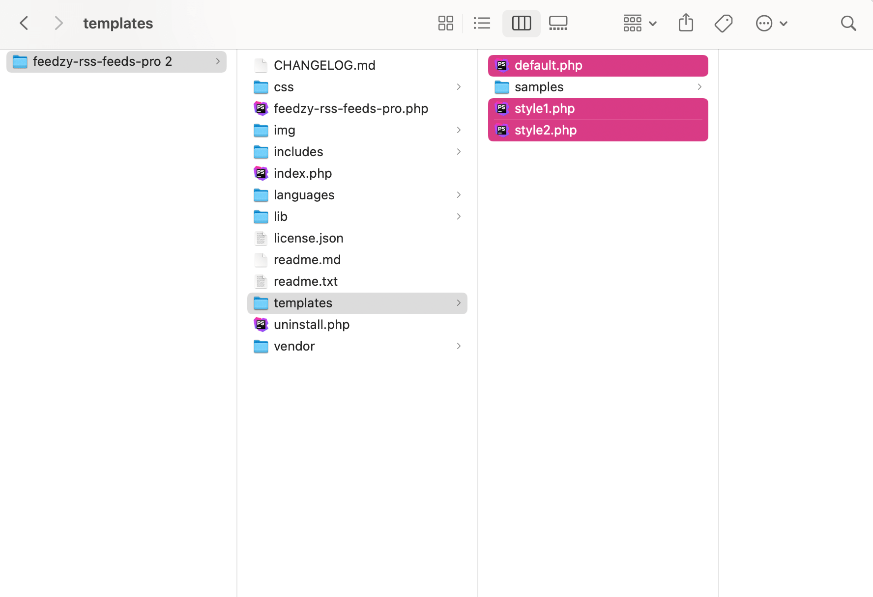 2 Copy all the files from your Feedzy RSS Pro 's folder > templates.