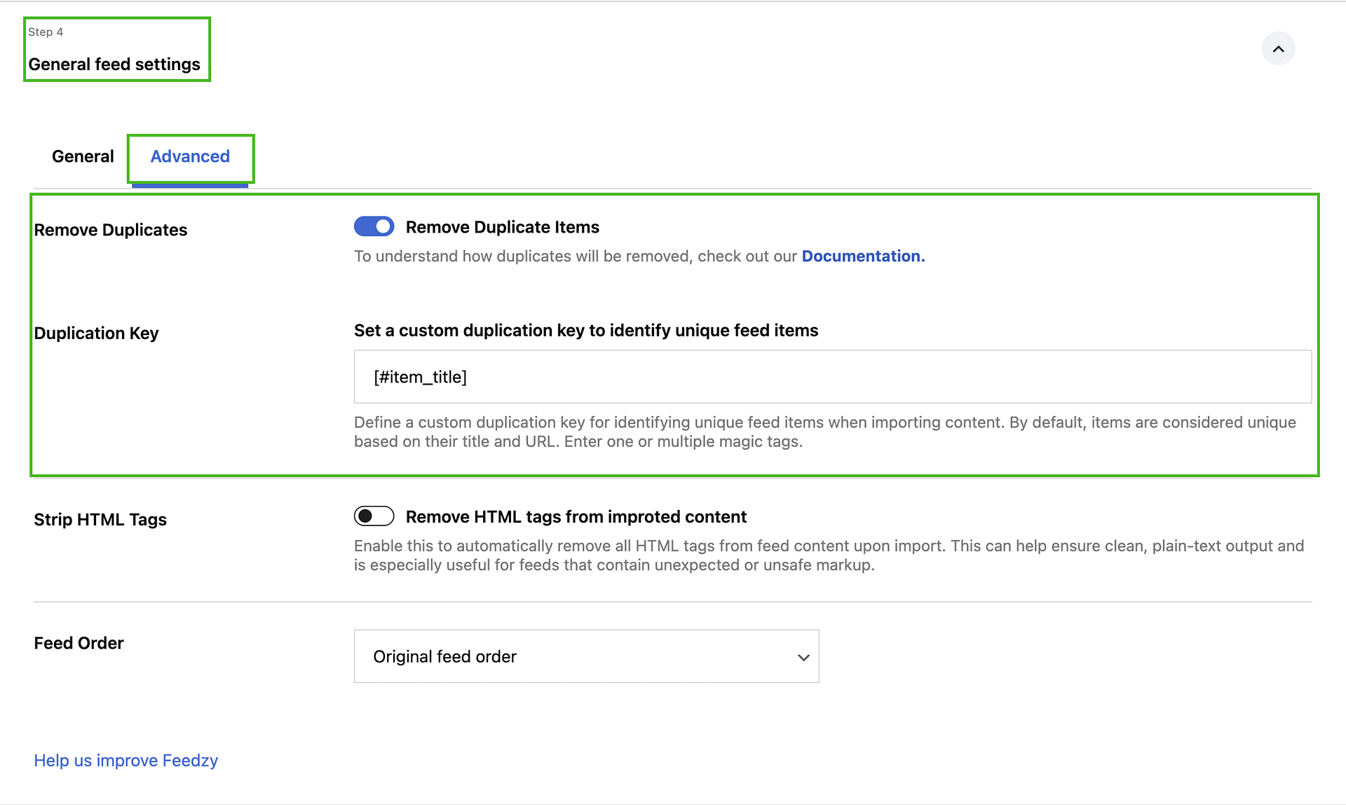 📝 Note: The Duplication Key feature requires Feedzy RSS Feeds Pro.