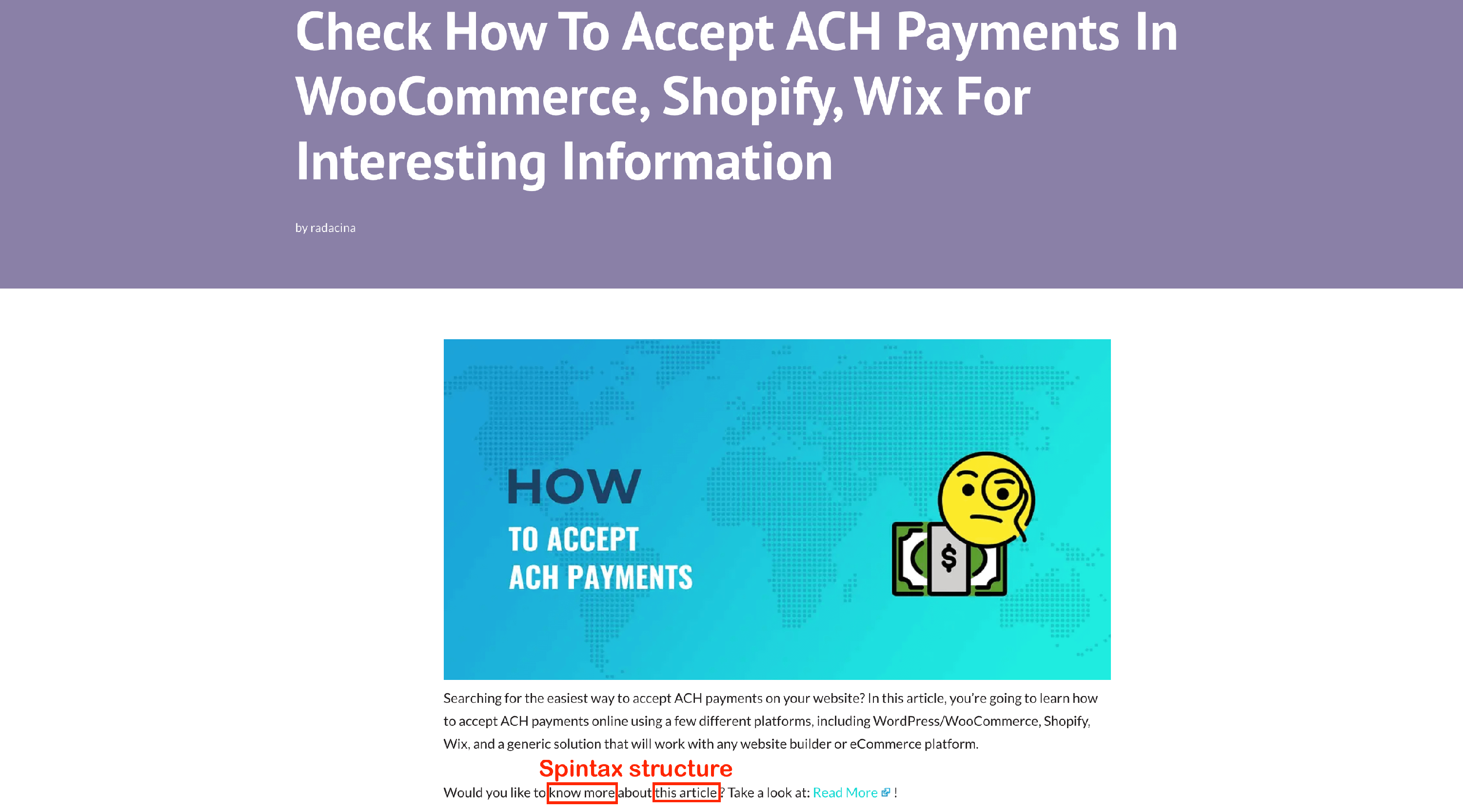 1Create a spintax structure. If you need any help, here is a spintax generator.