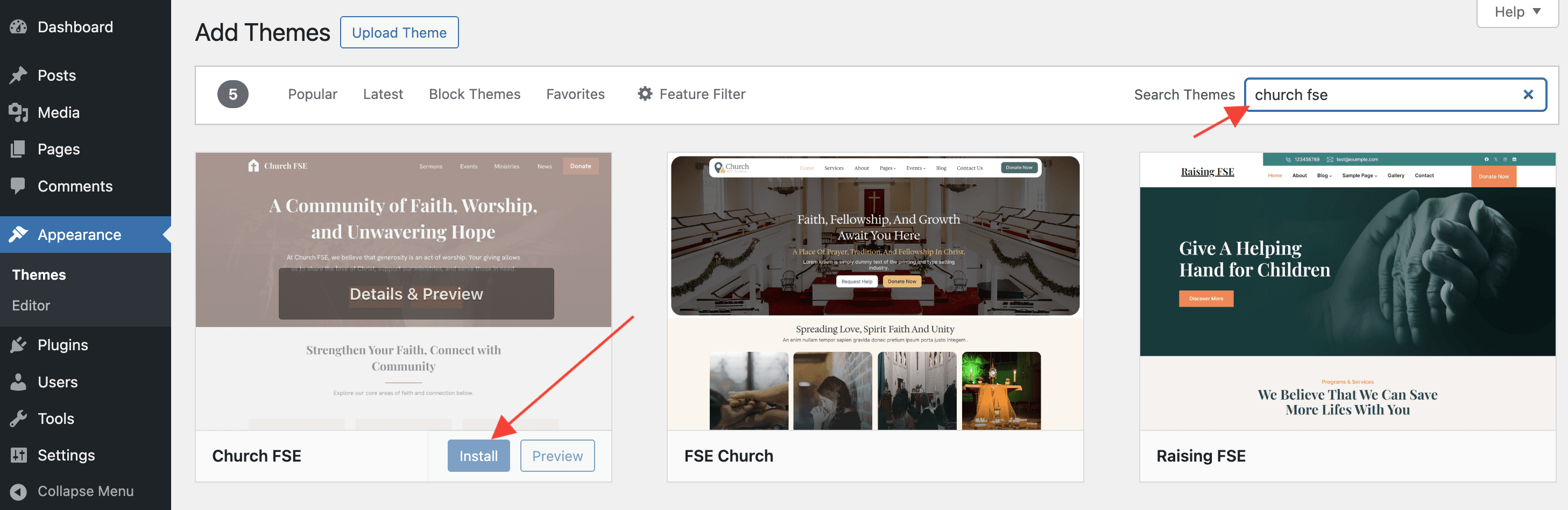 - Click the Add New button and search for Church FSE.