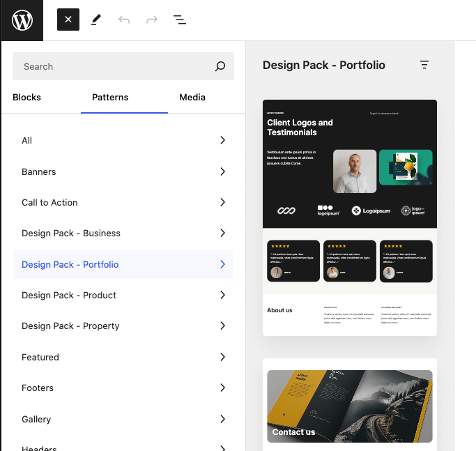 All layouts are available as patterns, and easily accessible via the pattern library and categorised in collections. Open any page, insert a pattern into it and enjoy a modular setup that you can customise and extend.
