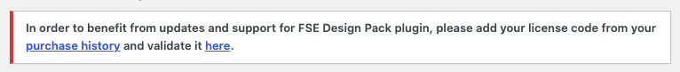 In order to enable future updates you will need to add and activate your License. The License can be found in your Themeisle Store account. Paste the License Number Under Settings \ General \ FSE Design pack License