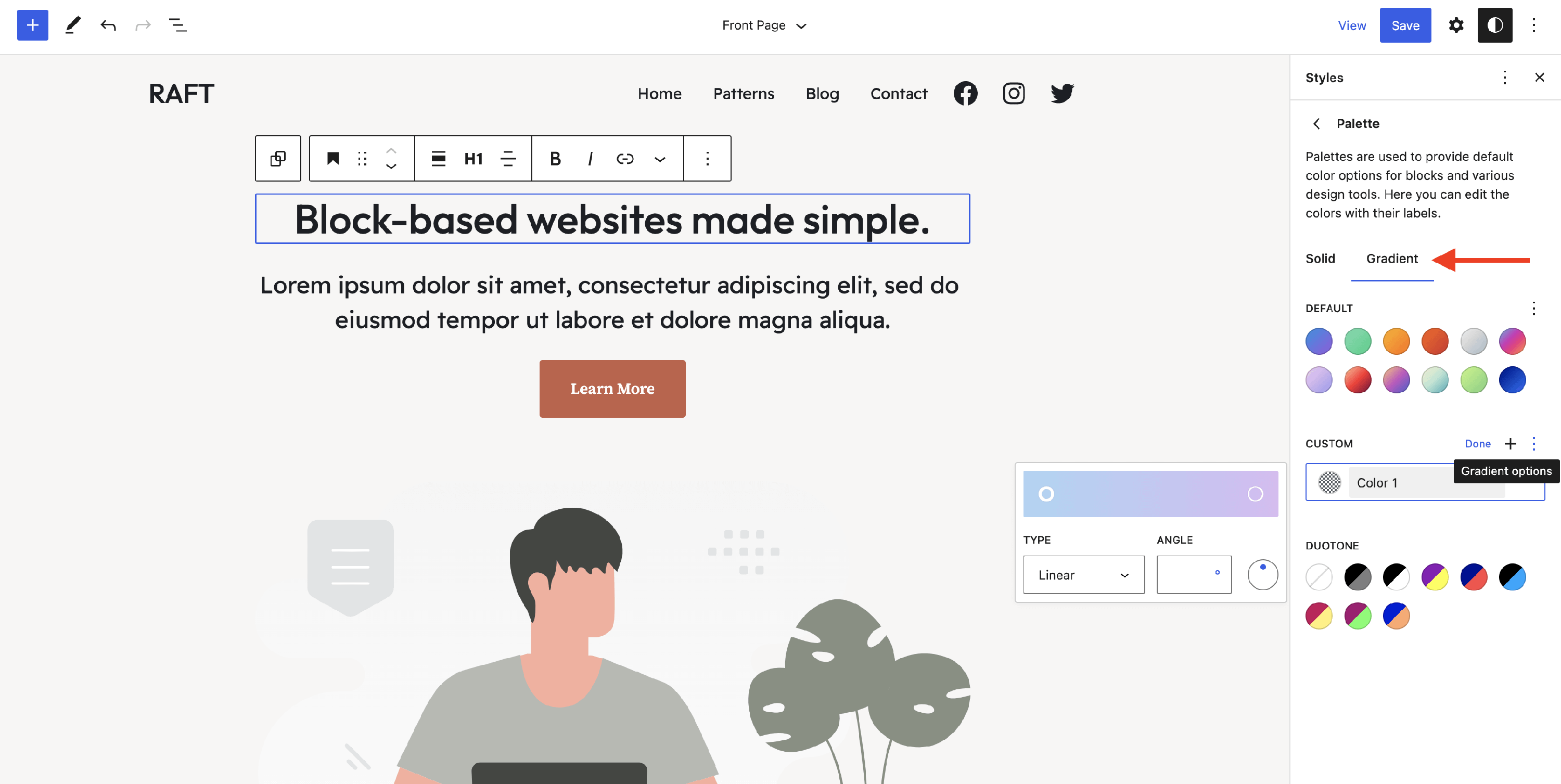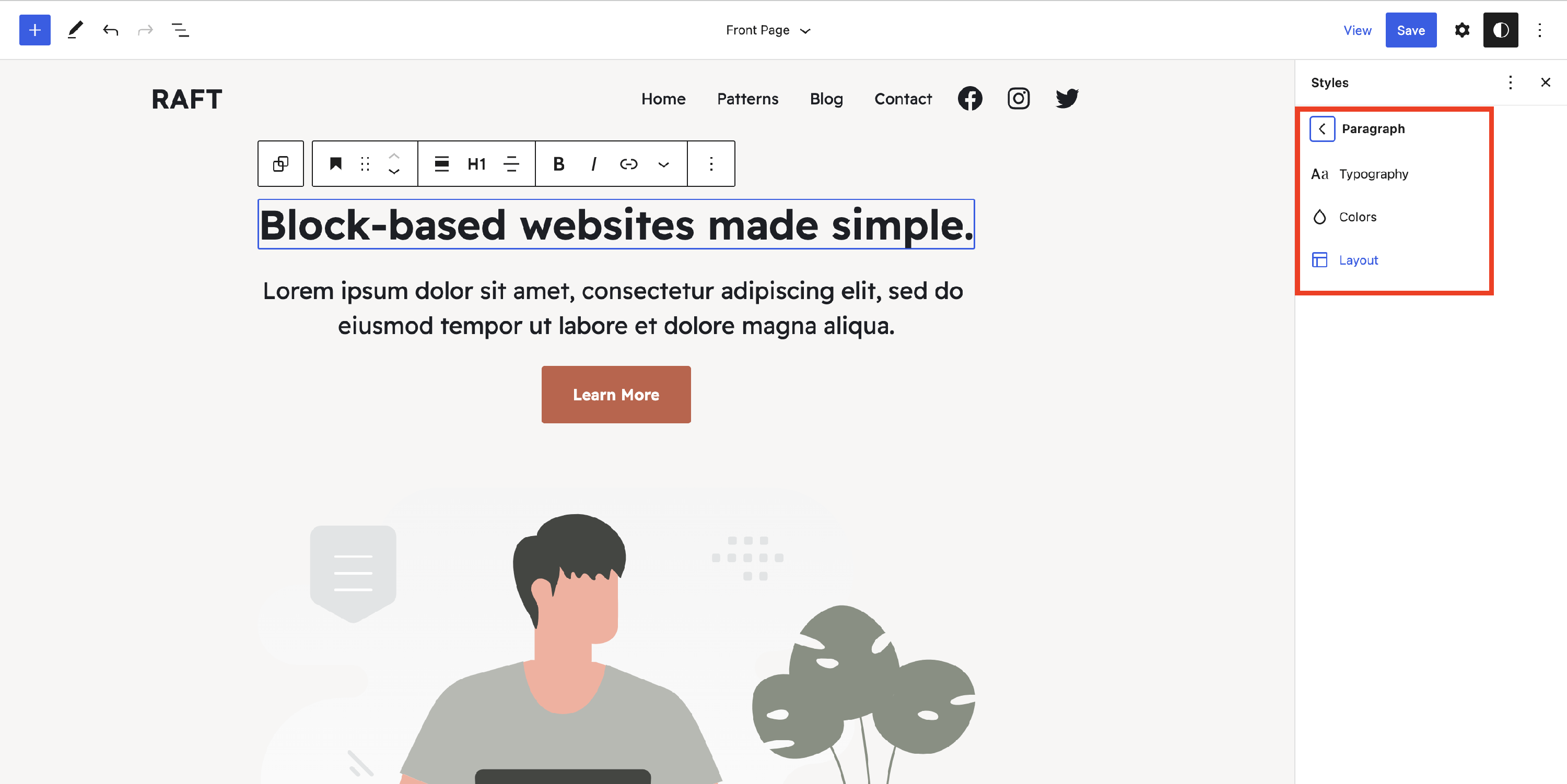 The Style Variations in FSE Themes ensures consistency across your website, as you can set global customizations for your blocks and not individually editing them. The changes you make inside the Styles panel will apply to all the pages of your website. For example, if you change the color of the headings, all the headings will match that color.