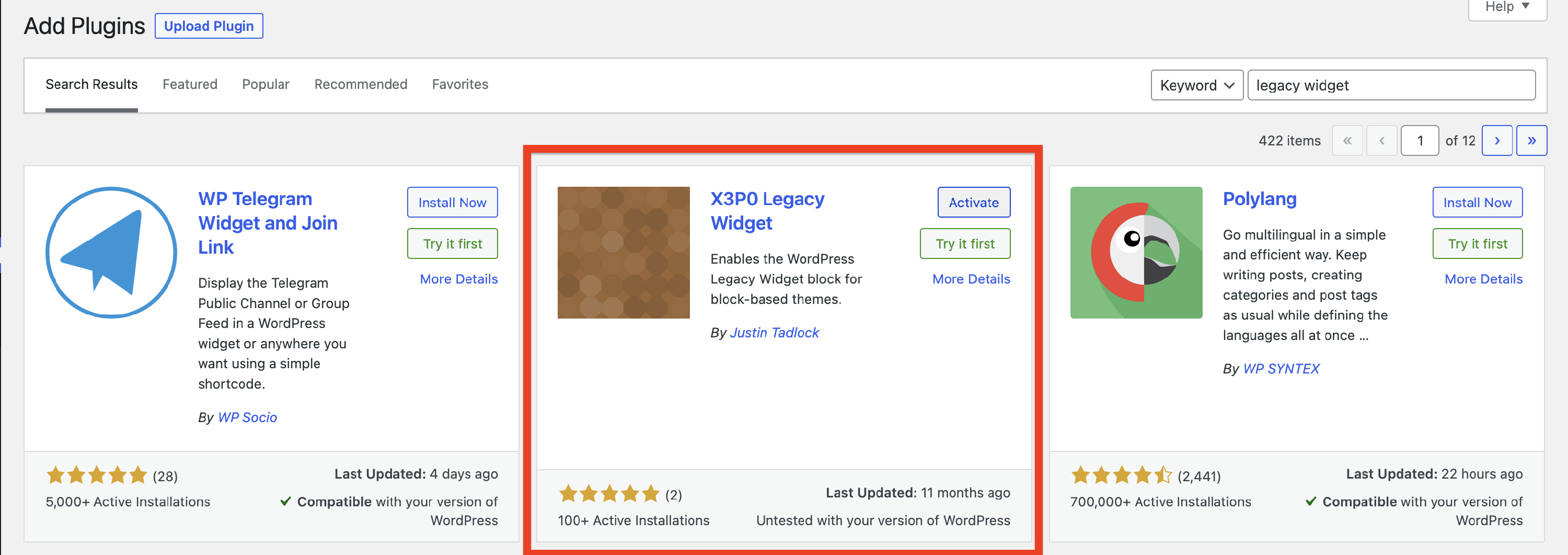 1 Install and activate the Legacy Widget plugin.