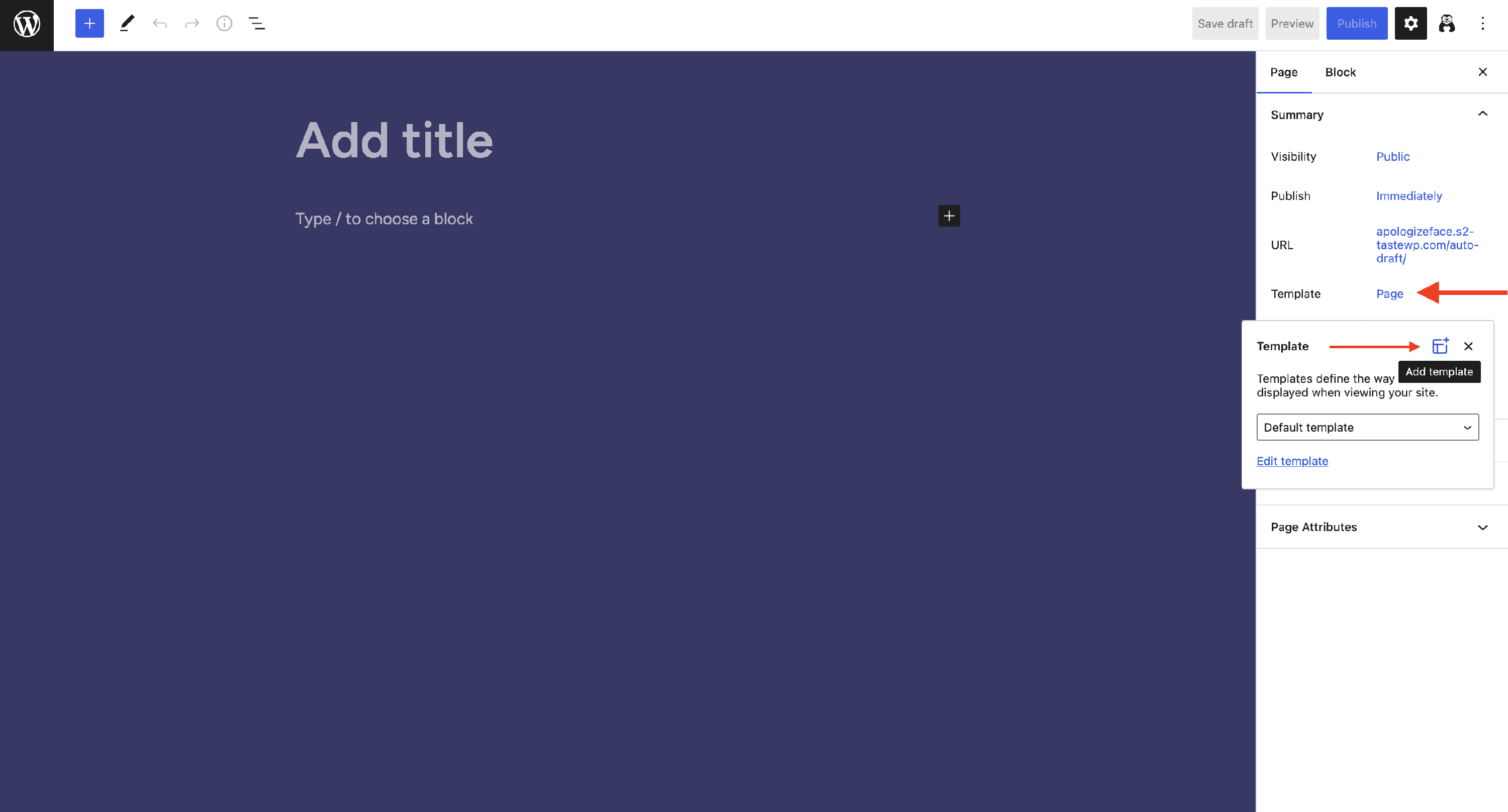 2 In the Page tab, go to Template and click on the name.