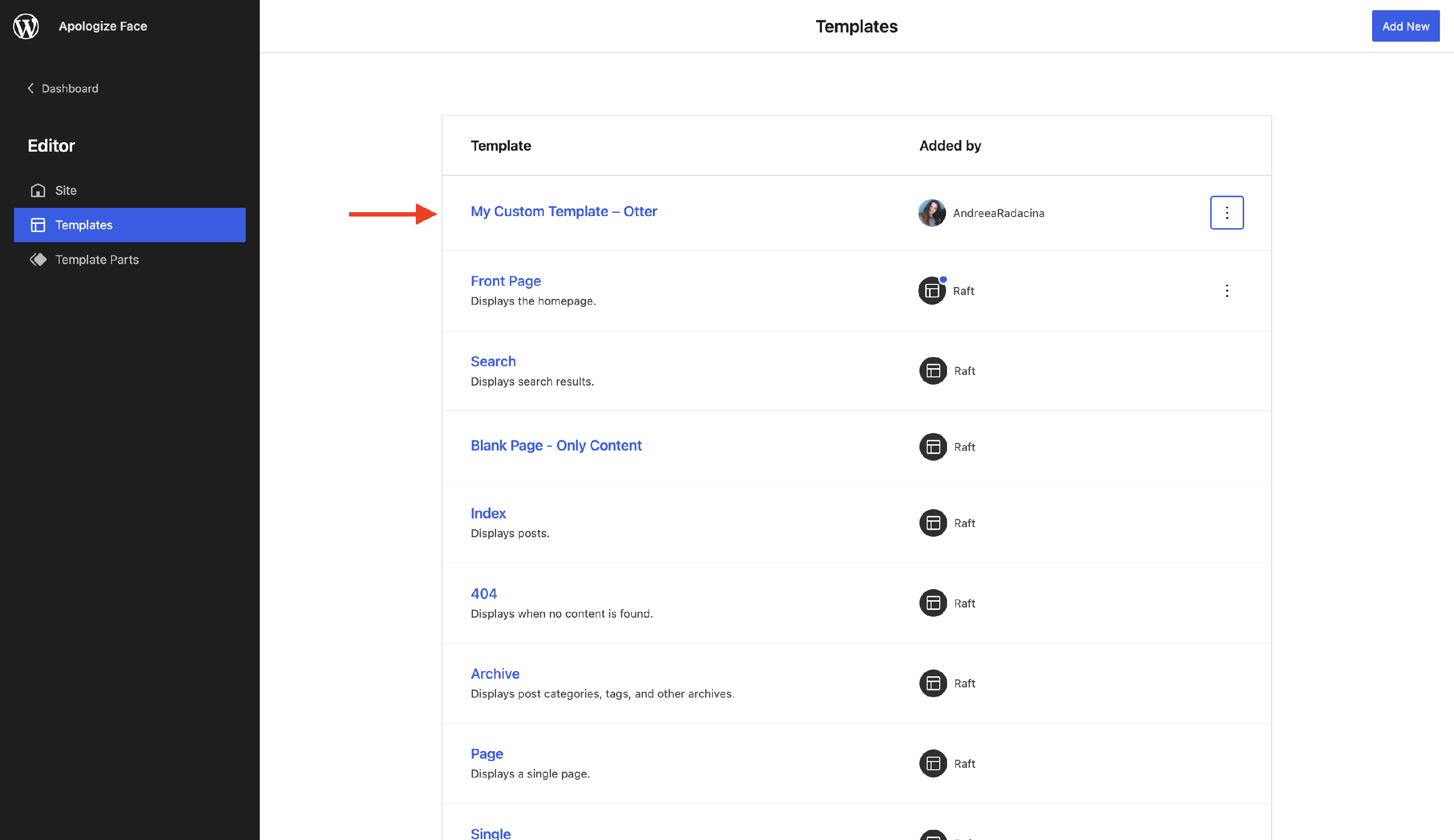 In this example, we have used the Raft theme, but the steps are the same for the other FSE Themes.