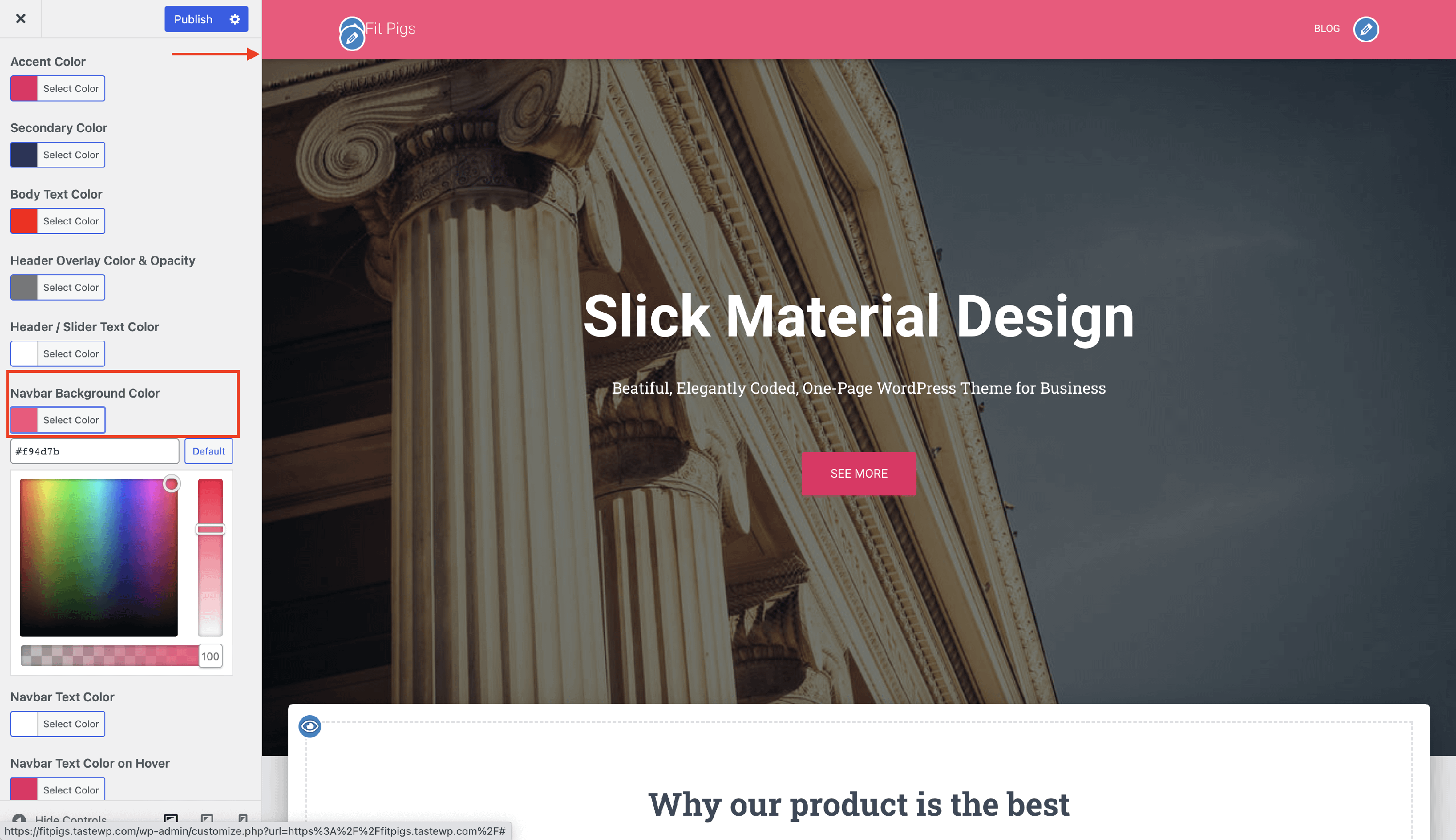 Step 4: Adjust the Navbar Background Color to suit your needs.