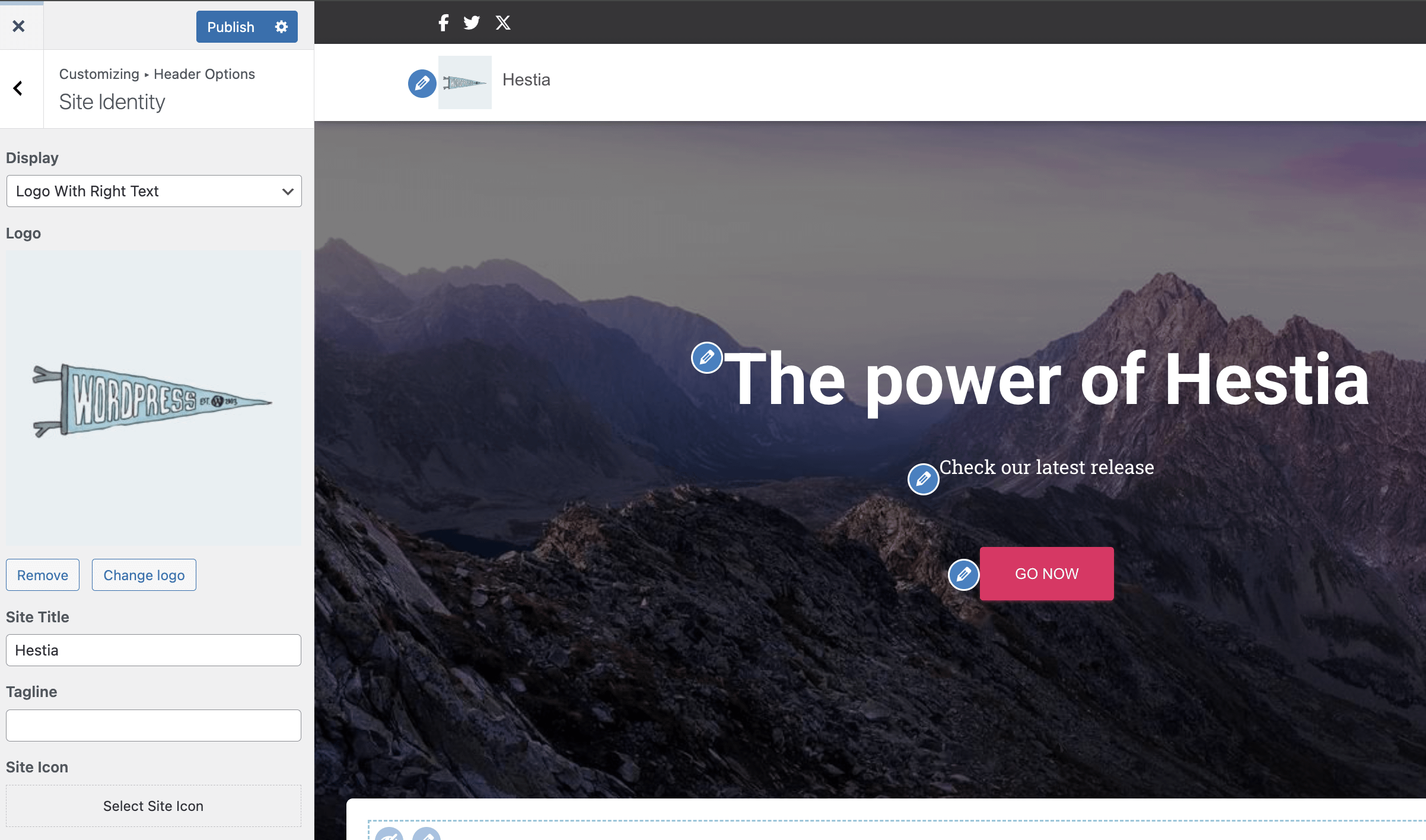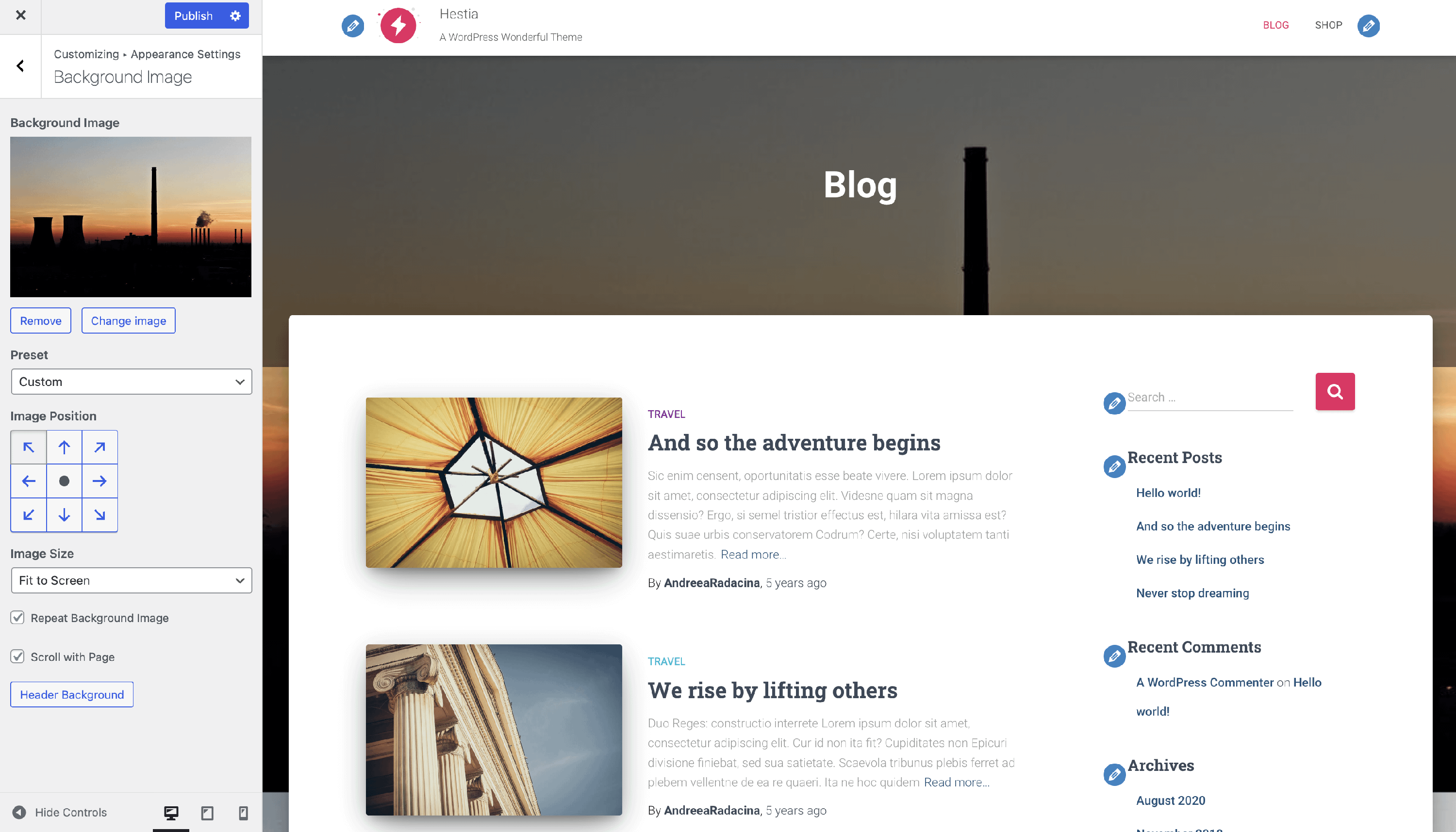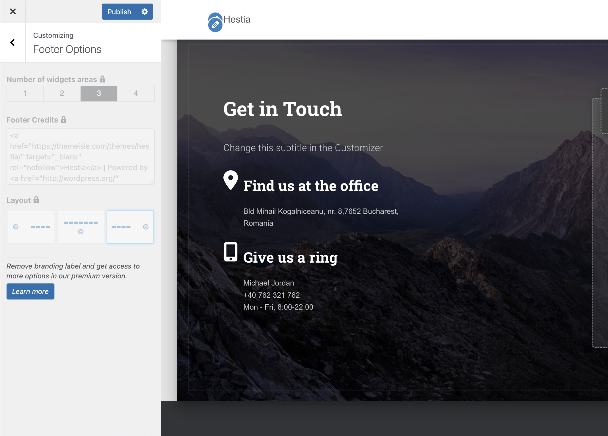 📝 Note: More frontpage sections and settings are available in Hestia Pro which you can get from here.