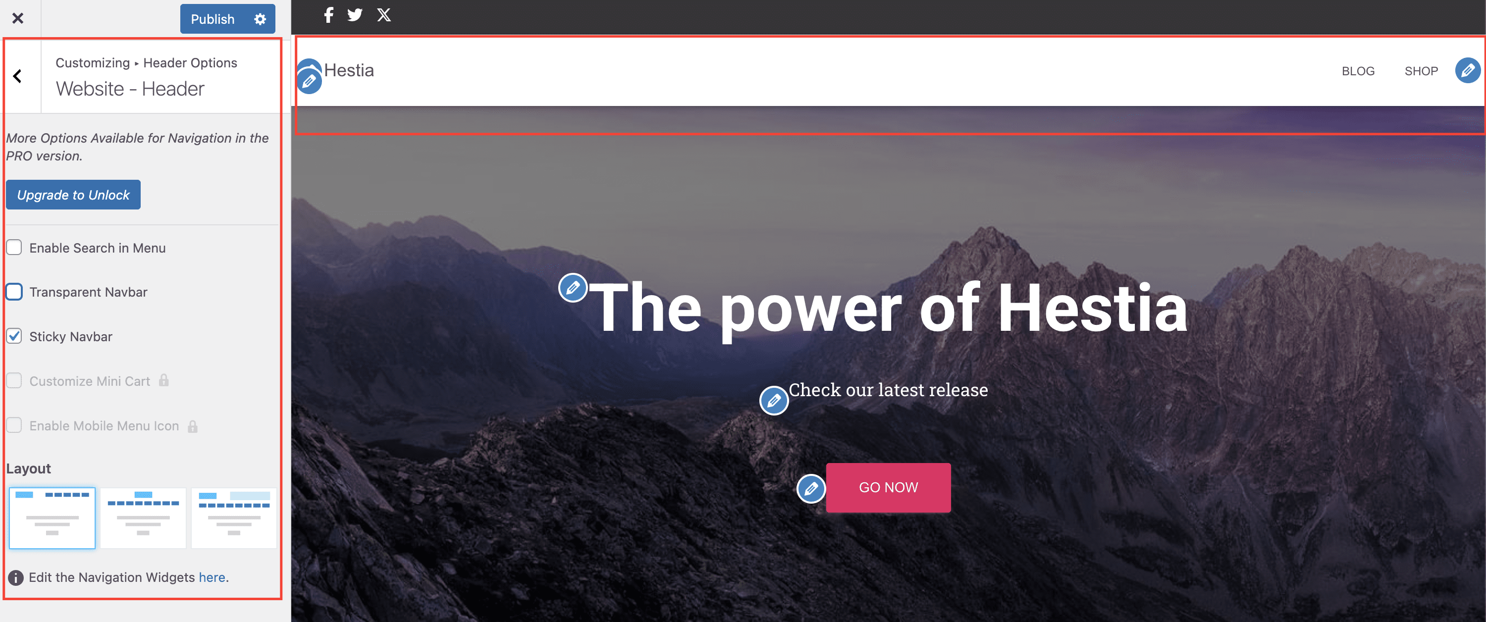 📝Note: More features such as shop options are available in Hestia Pro, which you can get from here.