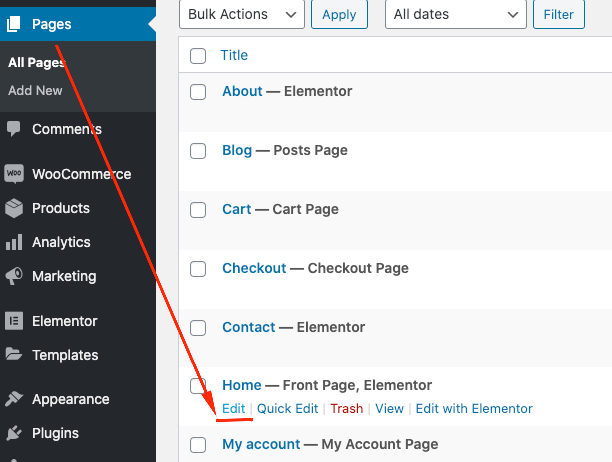 Edit the one set as Front Page.