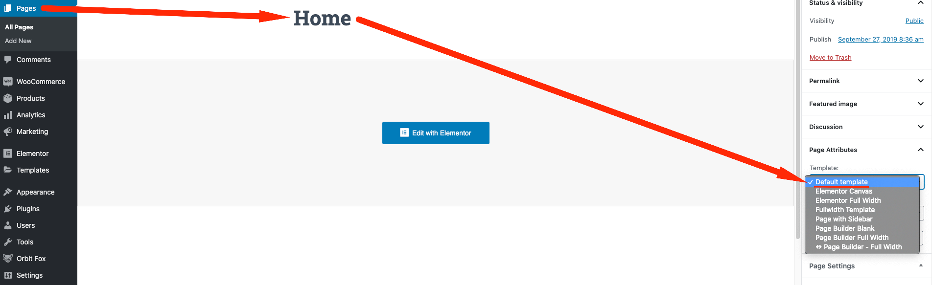 After following the above steps, edit the page set as home and make sure to have the Default template chosen.
