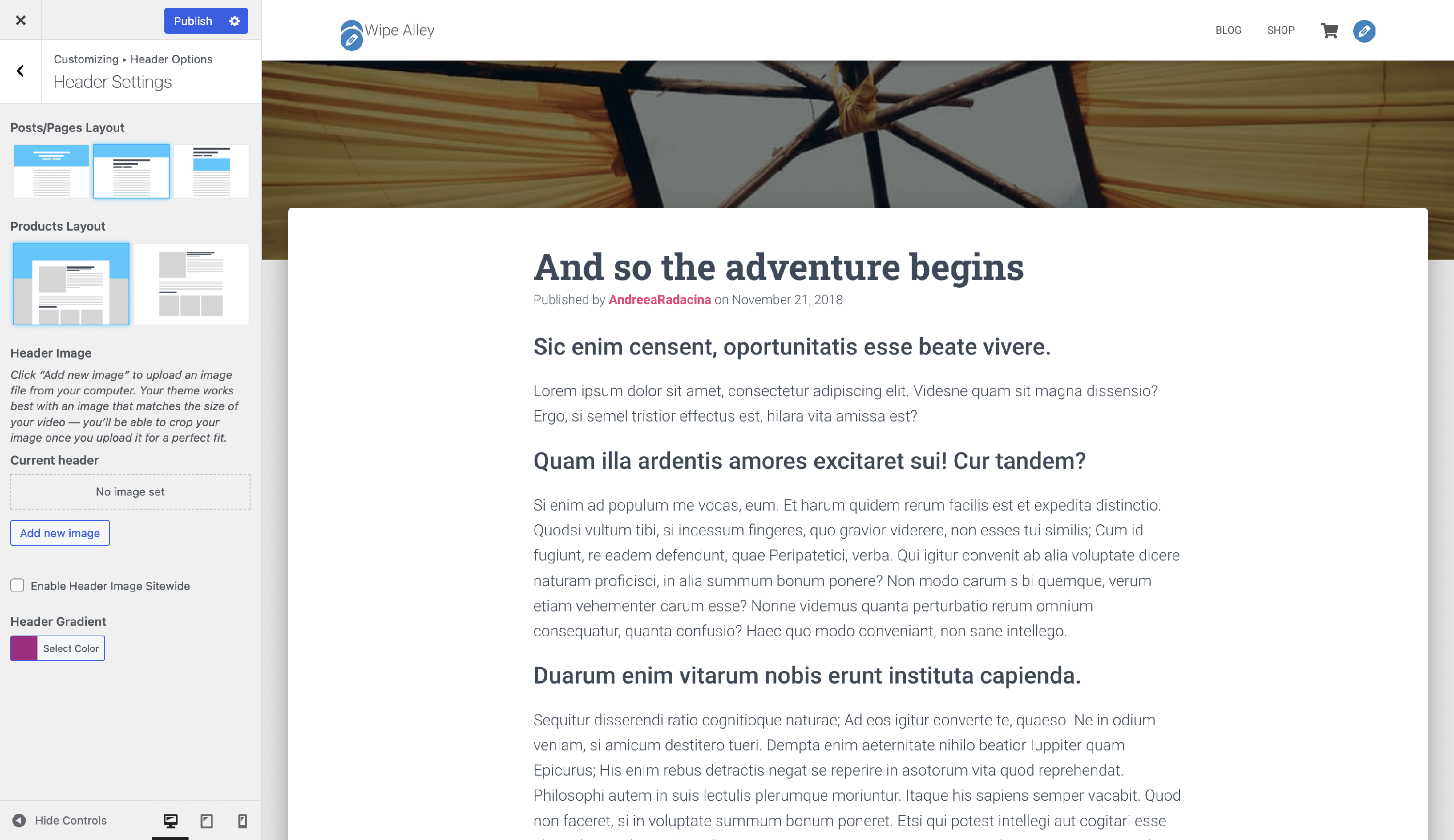 Changing the page/post layout in Hestia can be done in two ways: inside the Customizer or individually while editing a post or a page.