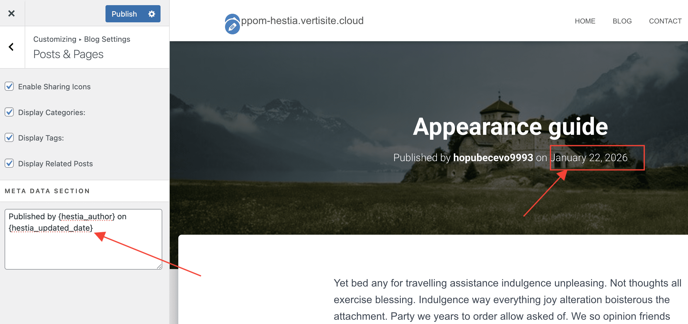 Available tags: {hestia_author}, {hestia_publish_date}, {hestia_updated_date}.