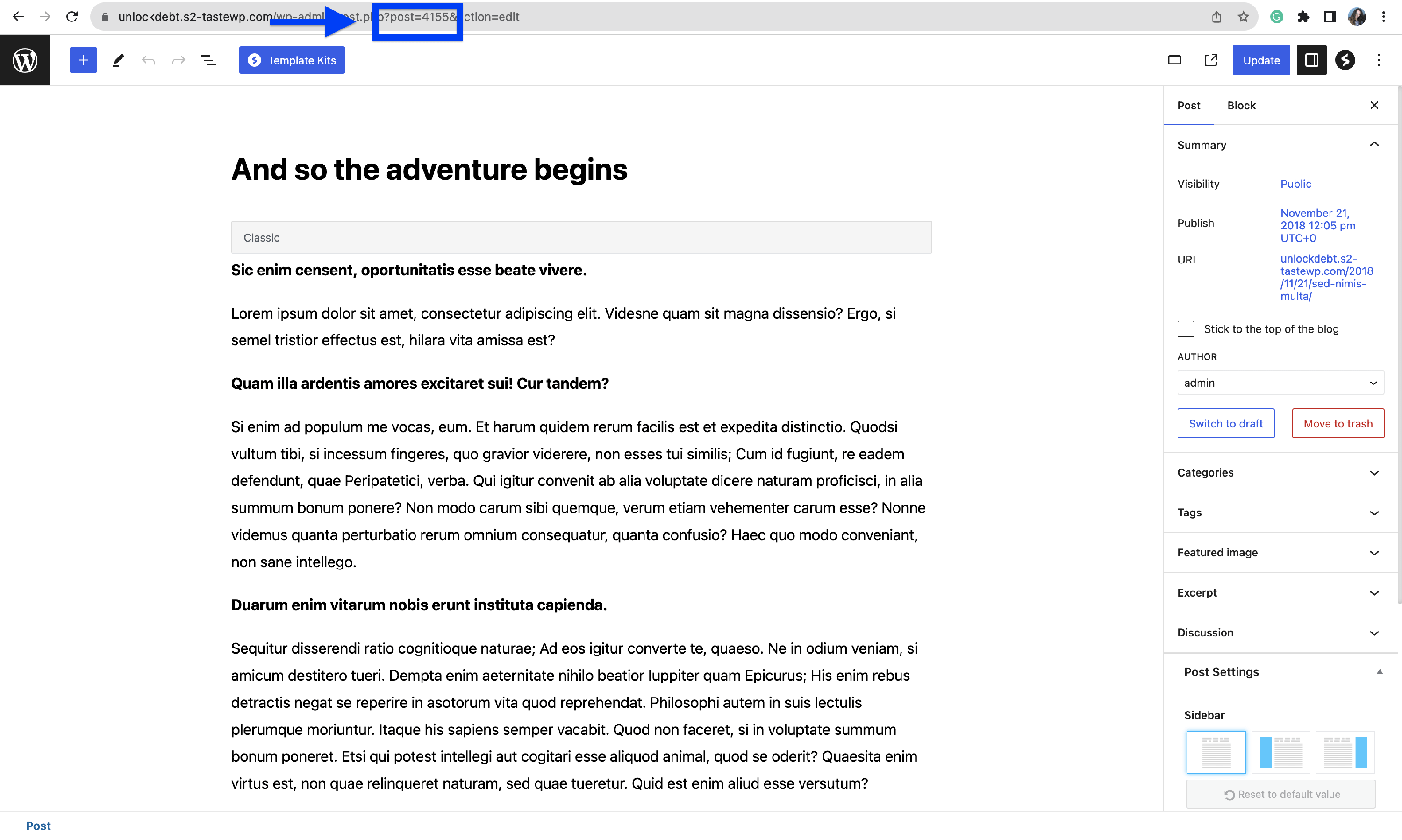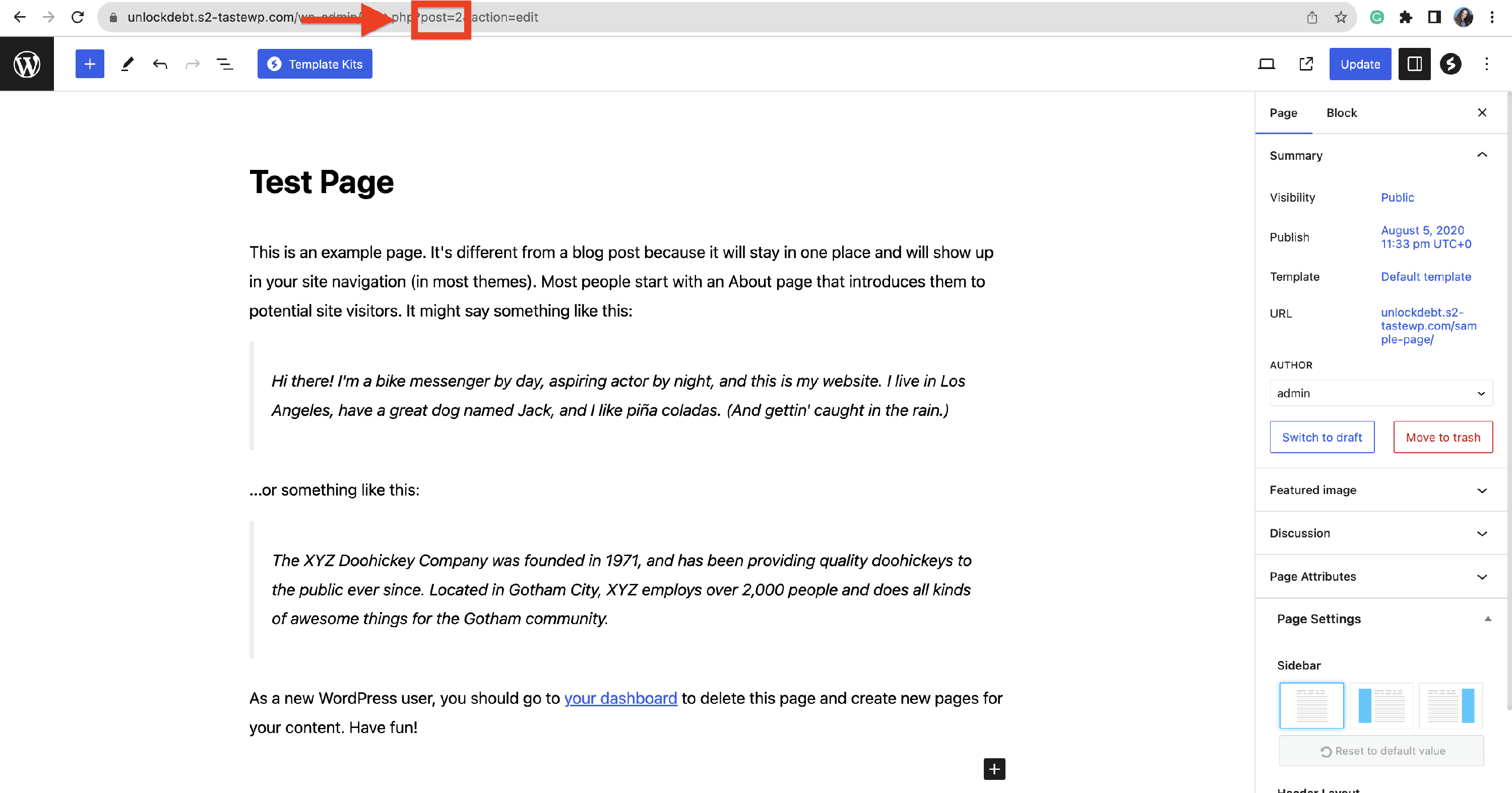 .page-template-default.page-id-139 .hestia-title { display: none; }Remove the title on a specific post by adding the following code to Appearance > Customize > Additional CSS; make sure you replace the ID number with that of the post you want to hide it from. The post ID can be found while you edit a post: