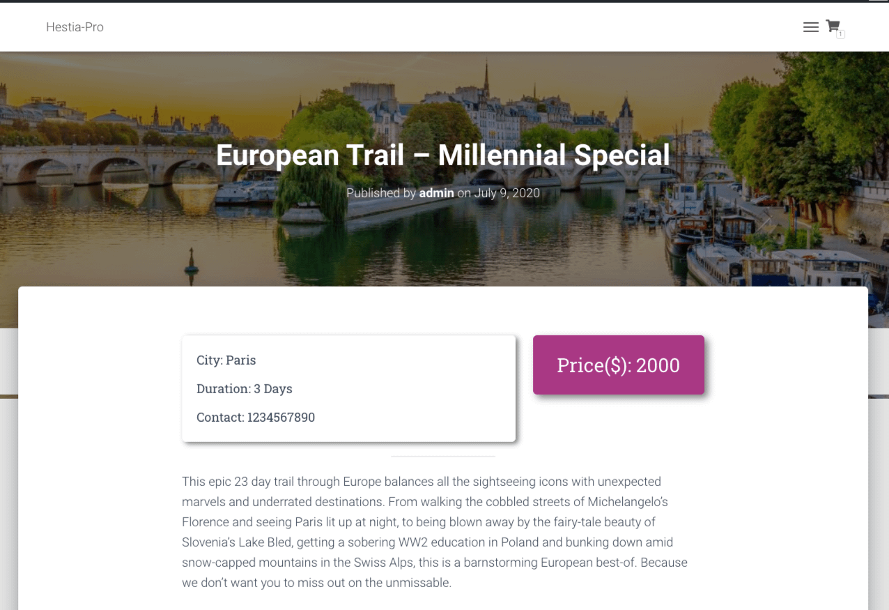 Hestia Pro is WooCommerce-ready, allowing you to create your online shop in no time! Out of the box, WooCommerce is quite powerful. Yet, if you want to customize further the design of your shop page and the layout of your single products, Toolset WooCommerce Views got you covered. Want to know more about that? Check Toolset’s WooCommerce-oriented documentation.