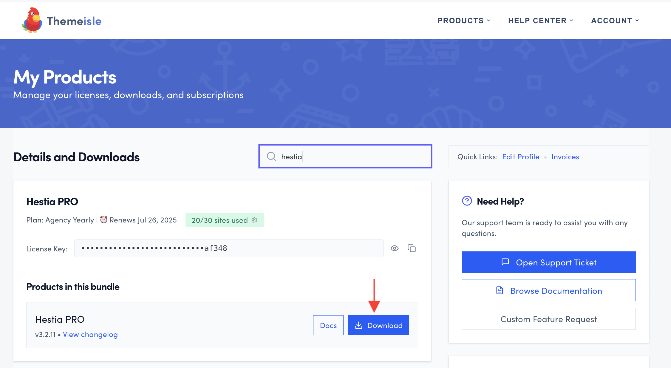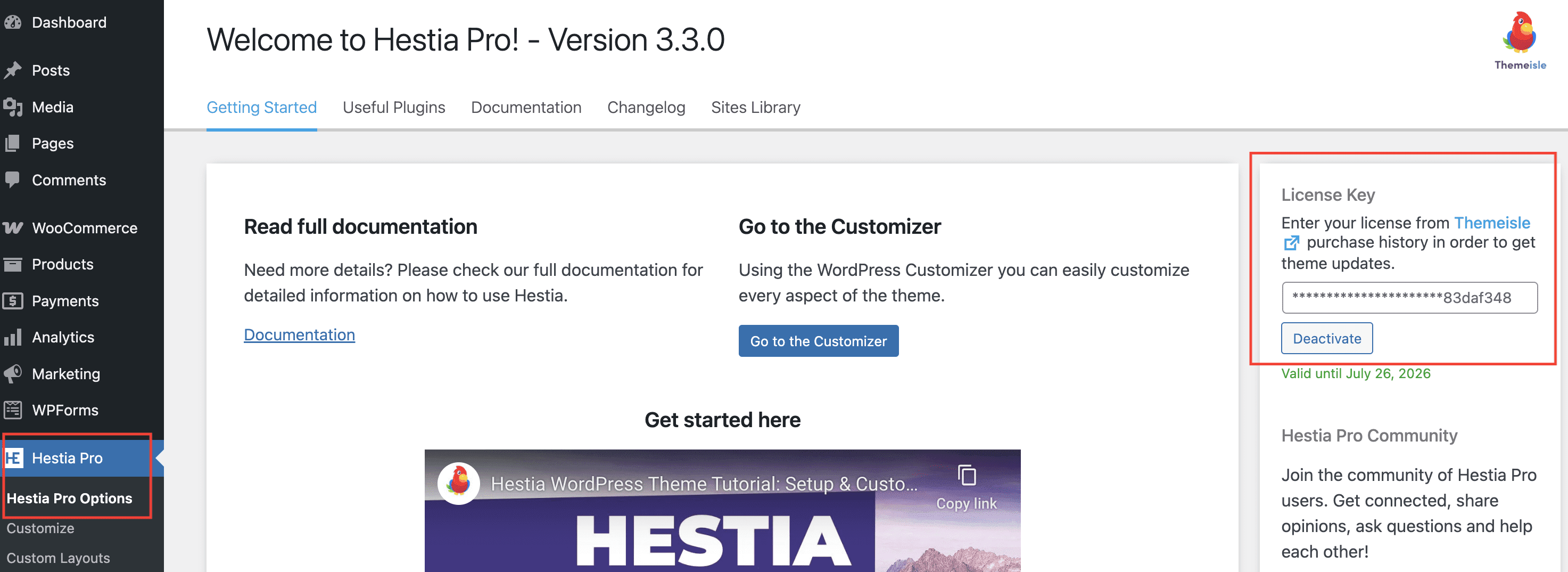 Activate the license key in Hestia Pro > Hestia Pro Options > License Key.