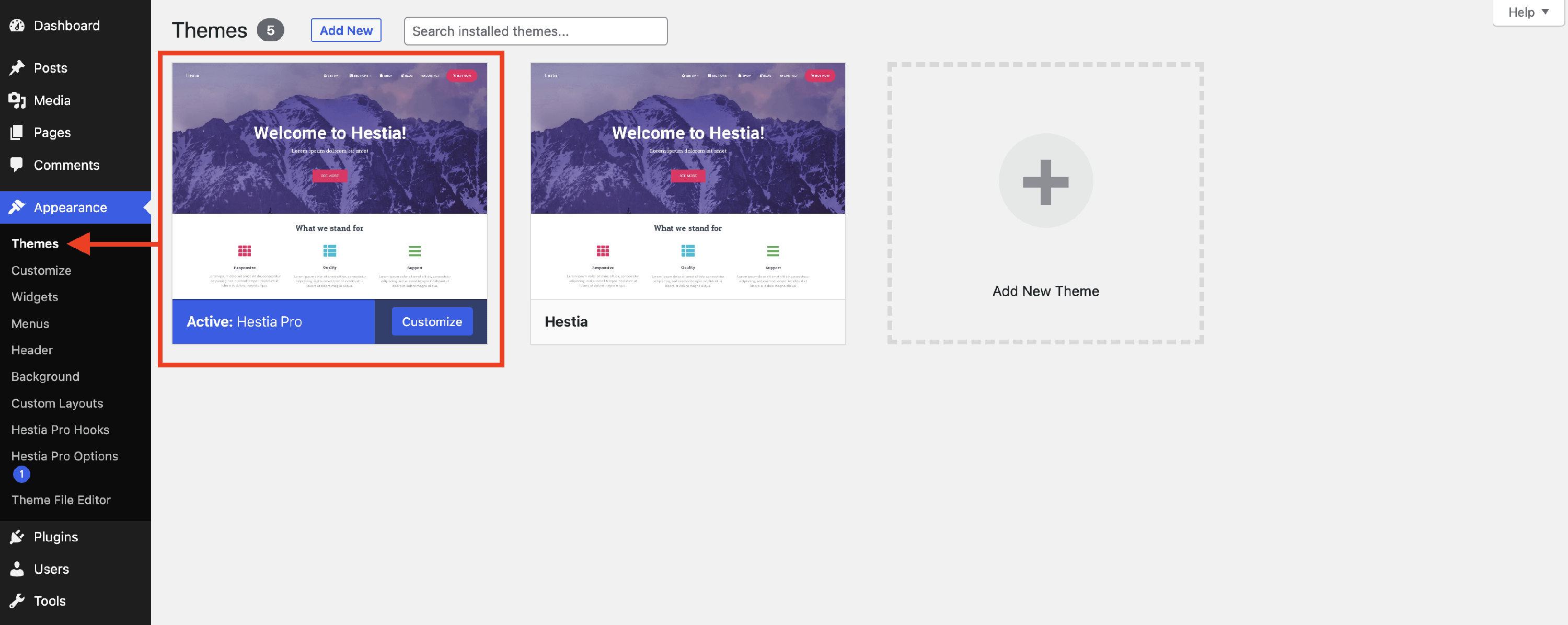 📝Note: If you used Hestia free before, do not remove it; let the theme active and follow the steps below. The previous changes will be automatically migrated to Hestia Pro.