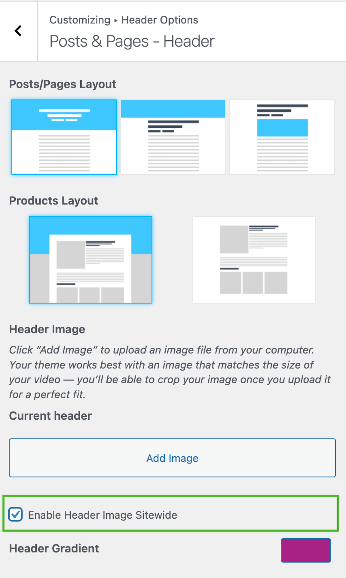📝 Note: When a sitewide header image is set, it overrides the featured image in the header for all posts and pages.