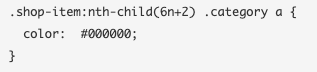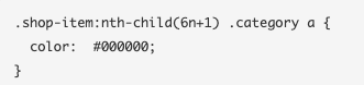 .woocommerce.archive .blog-post .products li:nth-of-type(6n+1) .category a, .woocommerce .products li:nth-of-type(6n+1) .category a{