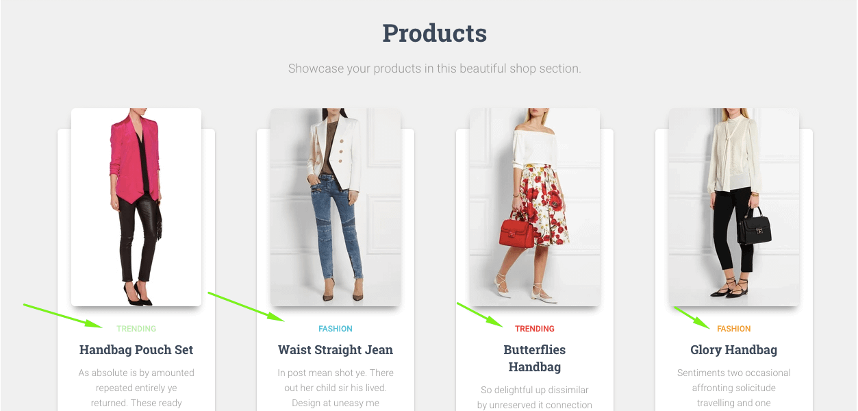 In order to change the color of the product category name displayed on the home page in the shop section, you need to add the following custom CSS to Appearance -> Customize -> Additional CSS section.